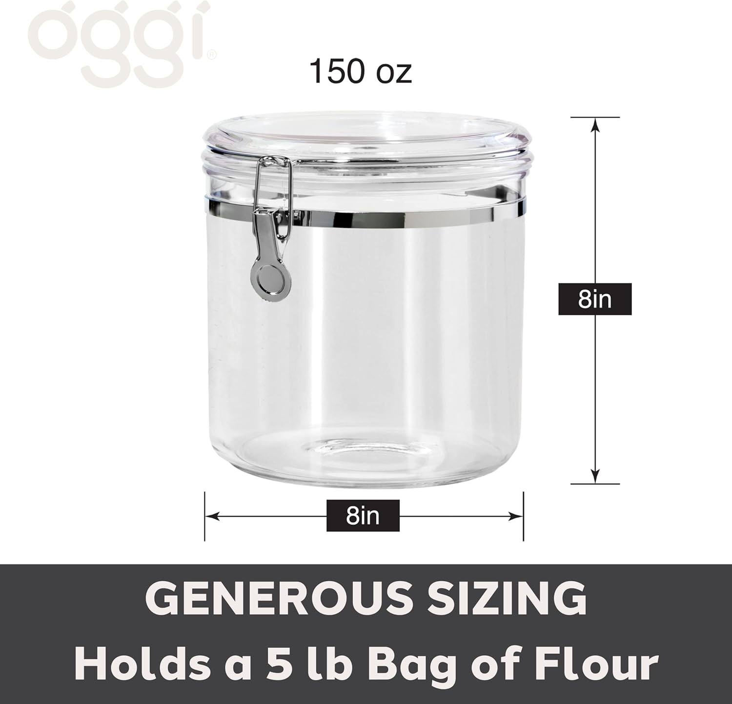 OGGI Jumbo Clear Canister with Clamp Lid, 150 oz - Airtight Food Storage Container, for Kitchen & Pantry Storage of Bulk, Dry Foods Including Pasta, Flour, Sugar, Coffee, Rice, Tea, Spices & Herbs