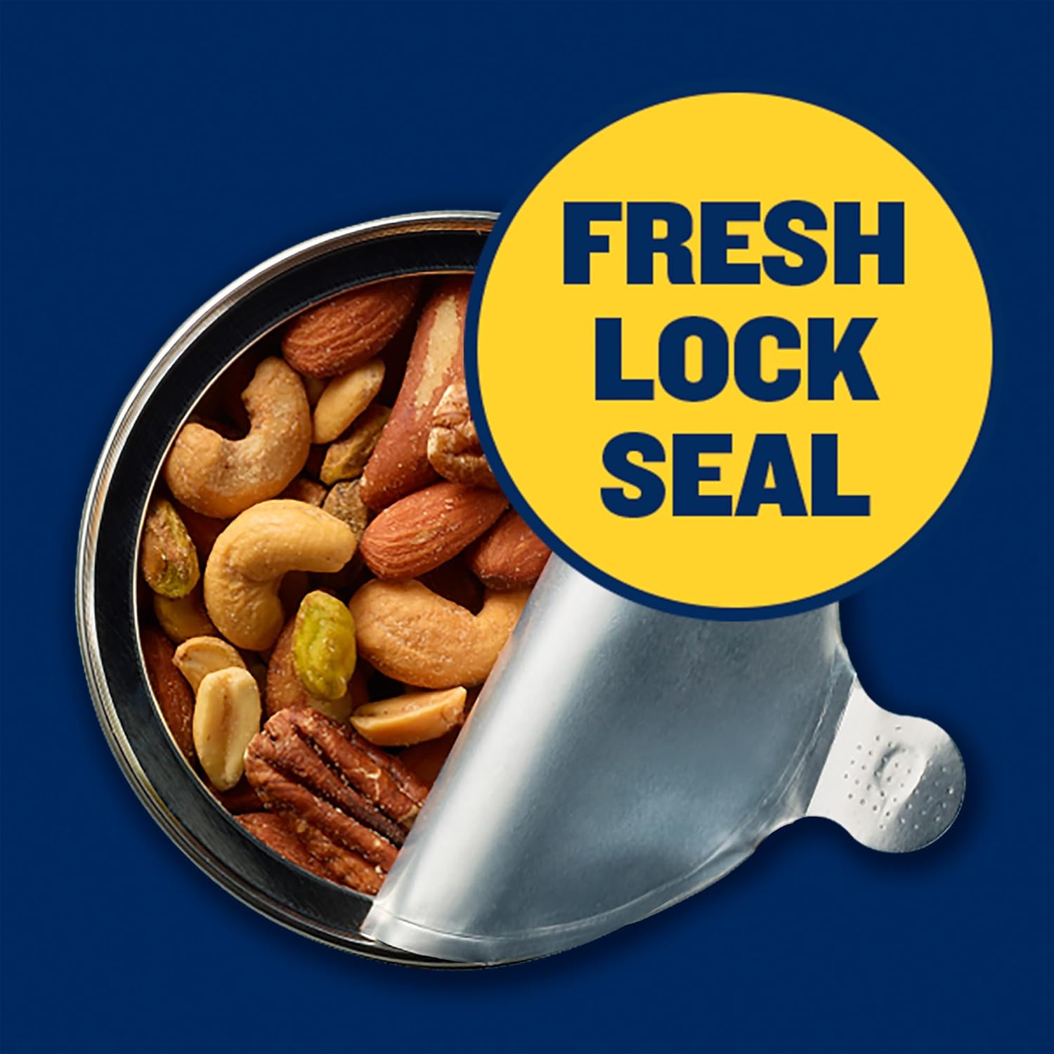 - Dressed to Impress: For cocktail parties or family movie nights, these stylish but never stuffy deluxe mixed nuts are always ready for a night out. The resealable canister is handy for on-the-go snacking on road trips or in offices