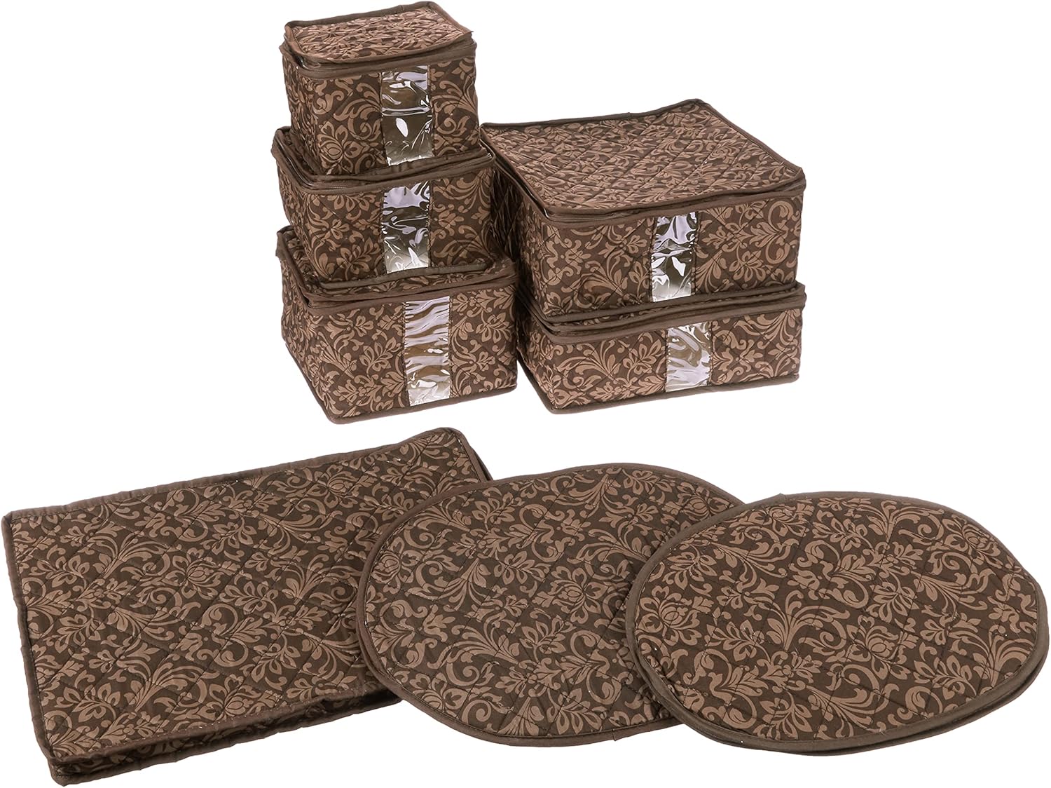 8-Piece Storage Containers Set – China, Brown, Quilted, Stackable Dish & Plate Protectors – Glass & Dinnerware Organizer Lids – Kitchen Storage for Meal, Tupperware, Glass Containers & Food Storage