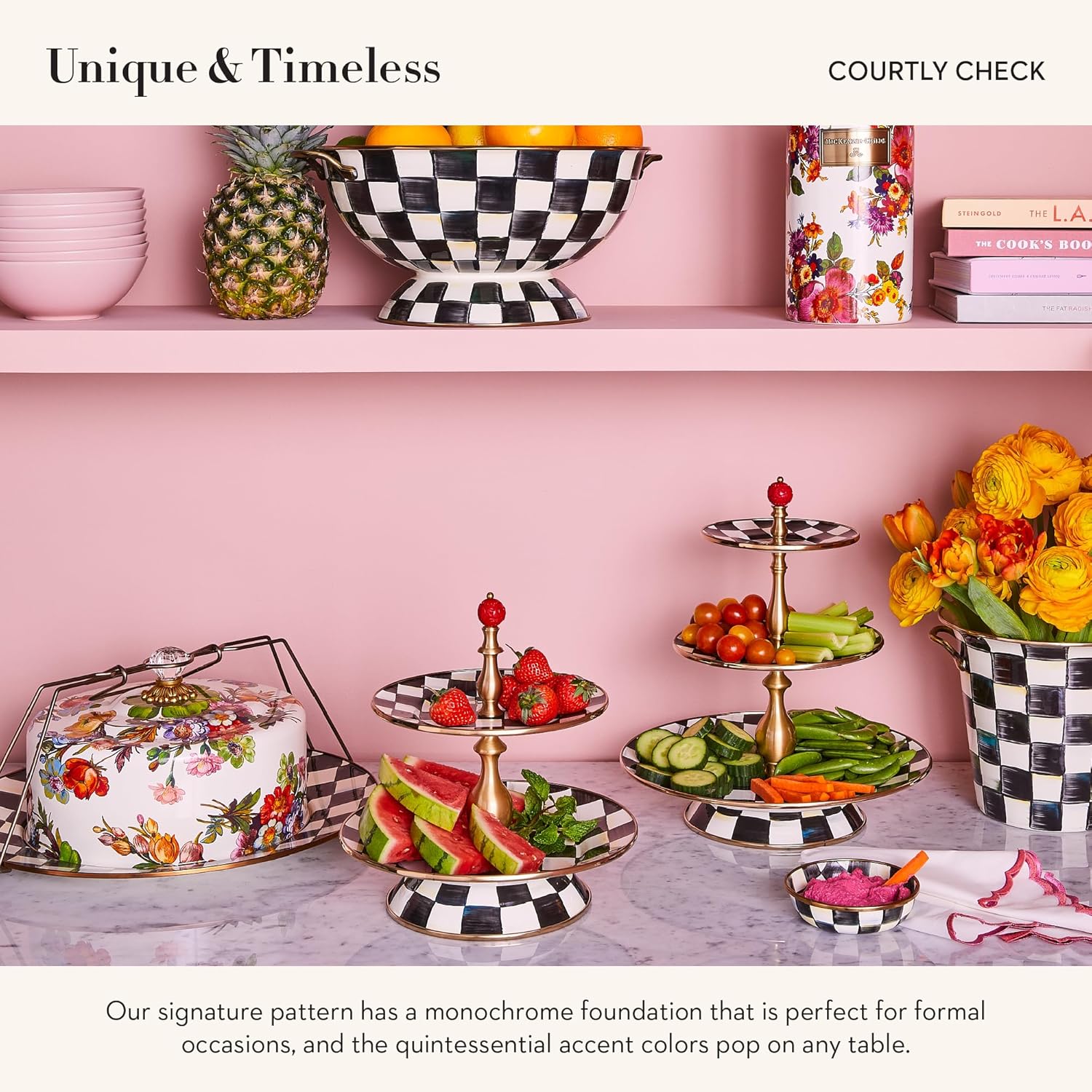 MACKENZIE-CHILDS Enamel Relish Dish, Small Serving Bowl for Entertaining, Black-and-White Courtly Check