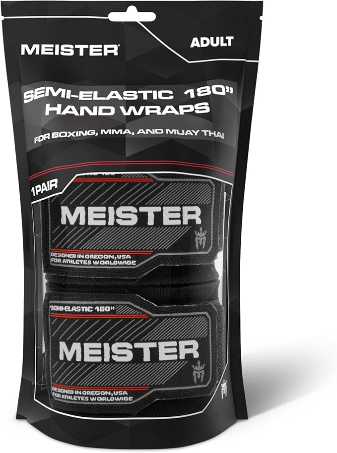 Meister Adult 180" Semi-Elastic Hand Wraps for MMA & Boxing (Pair)