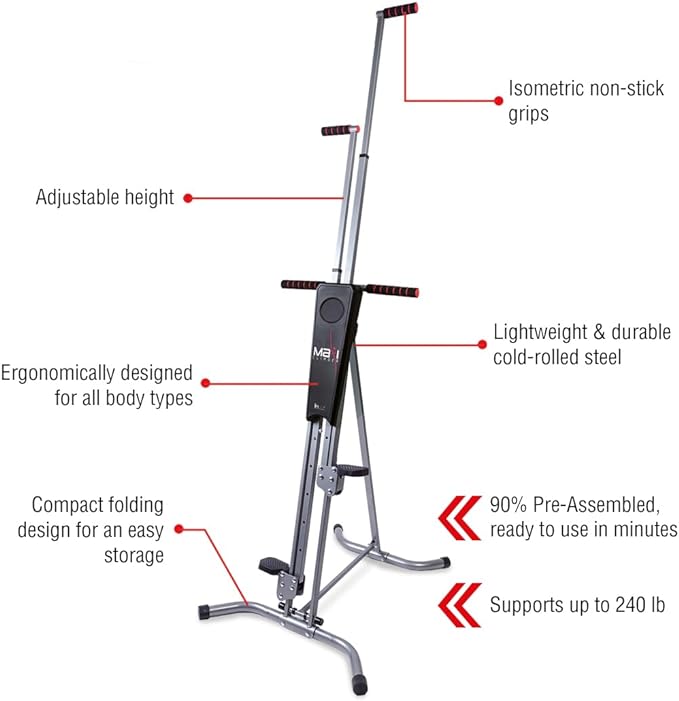 - Full Body Conditioning: Stationary climber delivers a full-body workout that tones muscles and burns fat by engaging your arms, core, and legs, in one fluid climbing motion