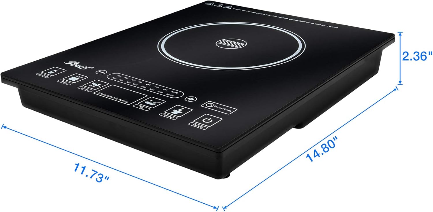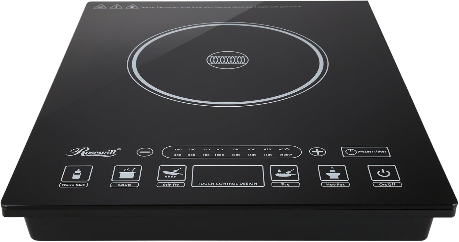 - Portable Induction Cooktop: Rosewill induction cooktop uses a 120V power supply and generates a strong power of 1800 Watts for fast heating. Heats up in a second and enjoys your meal whenever you want.