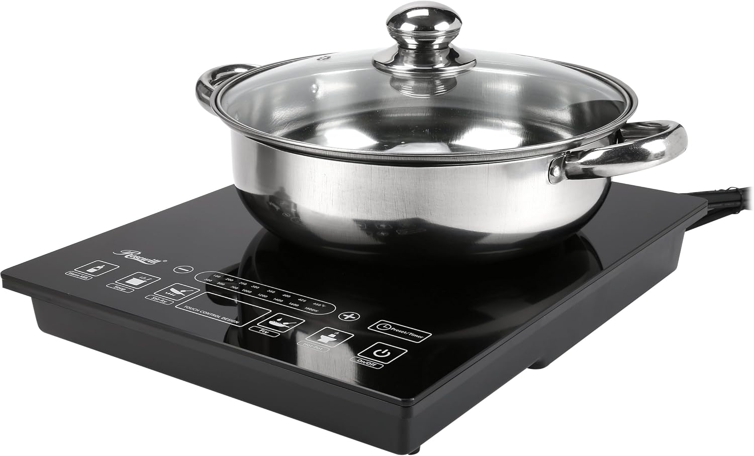 Rosewill Induction Cooker 1800 Watt, 5 Pre-Programmed Induction Cooktop, Electric Burner with Stainless Steel Pot 10" 3.5 QT 18-8, RHAI-15001