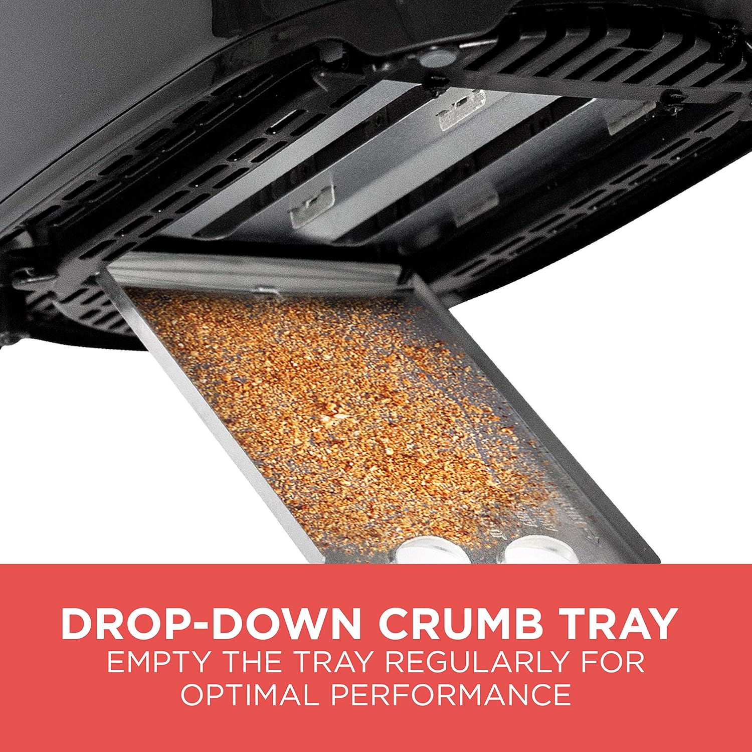 - Drop-Down Crumb Tray - Keep the counter clean and the kitchen smelling fresh. The crumb tray lets you remove crumbs before they burn or mess up your kitchen.