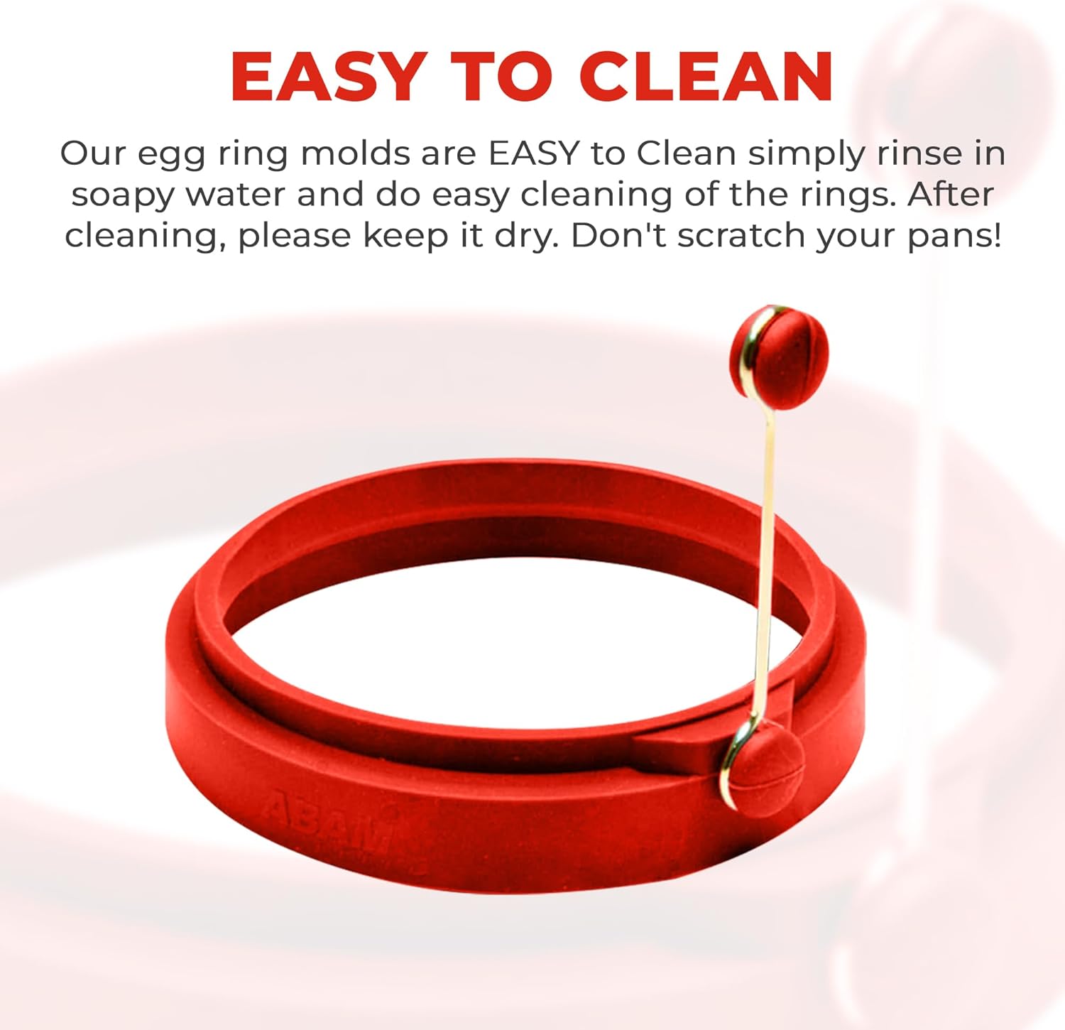 - 🍳 Premium Quality: ABAM silicone egg rings are made from high-quality BPA-free materials, ensuring safety and durability. Silicone egg molds have non-stick surface and foldable handle make them easy and safe to use, perfect for cooking round pancakes, eggs, and more.