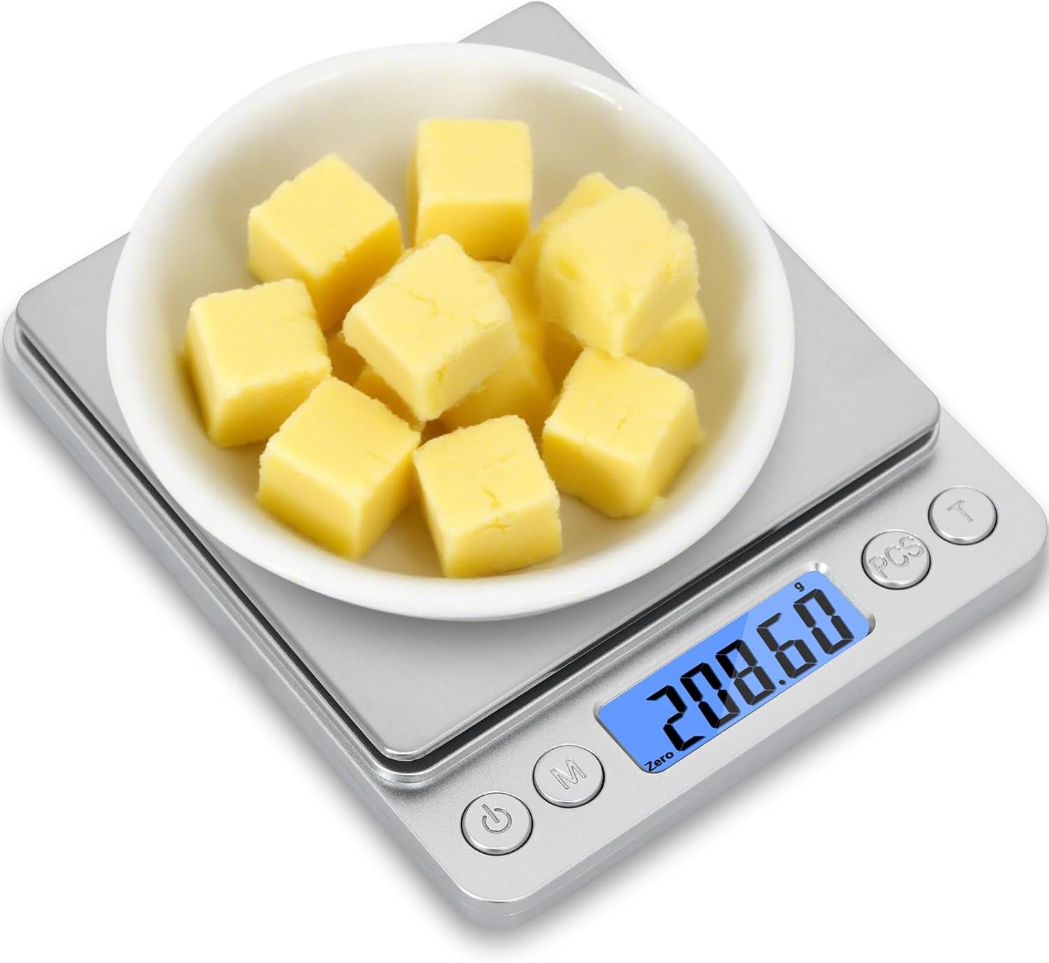 - Smart Multi-functional Scale: With 4 physical buttons (Power/ M/ PCS/ T), "M" for switching units, "PCS" for counting amount, "T" for returning to 0.00, what's more, 60 s automatic shutdown function for maximum battery power saving;