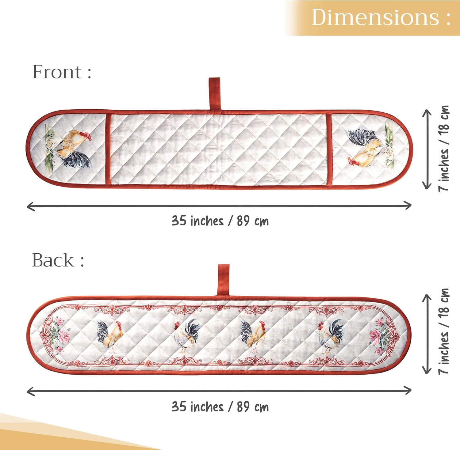 - Package includes: Includes 1 double oven mitt sized 7"x35". Perfect for handling hot cookware safely while adding a touch of European elegance to your kitchen. Designed in Europe and made in India with care