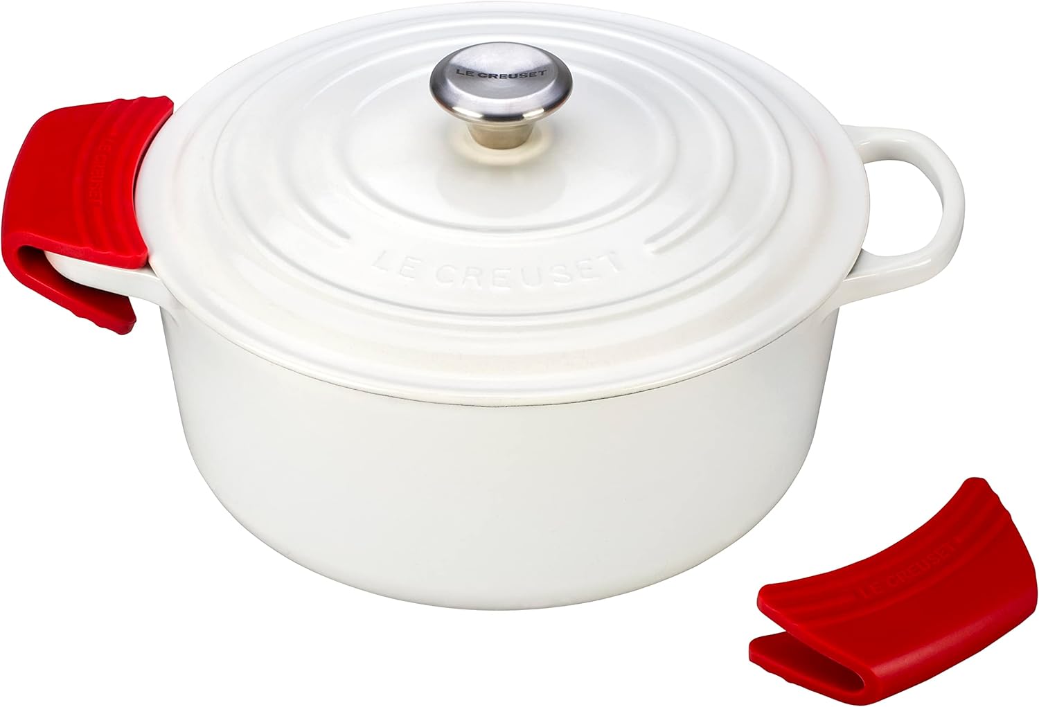 Le Creuset Silicone Set of 2 Handle Grips, 5" x 2 1/2" each, Cerise