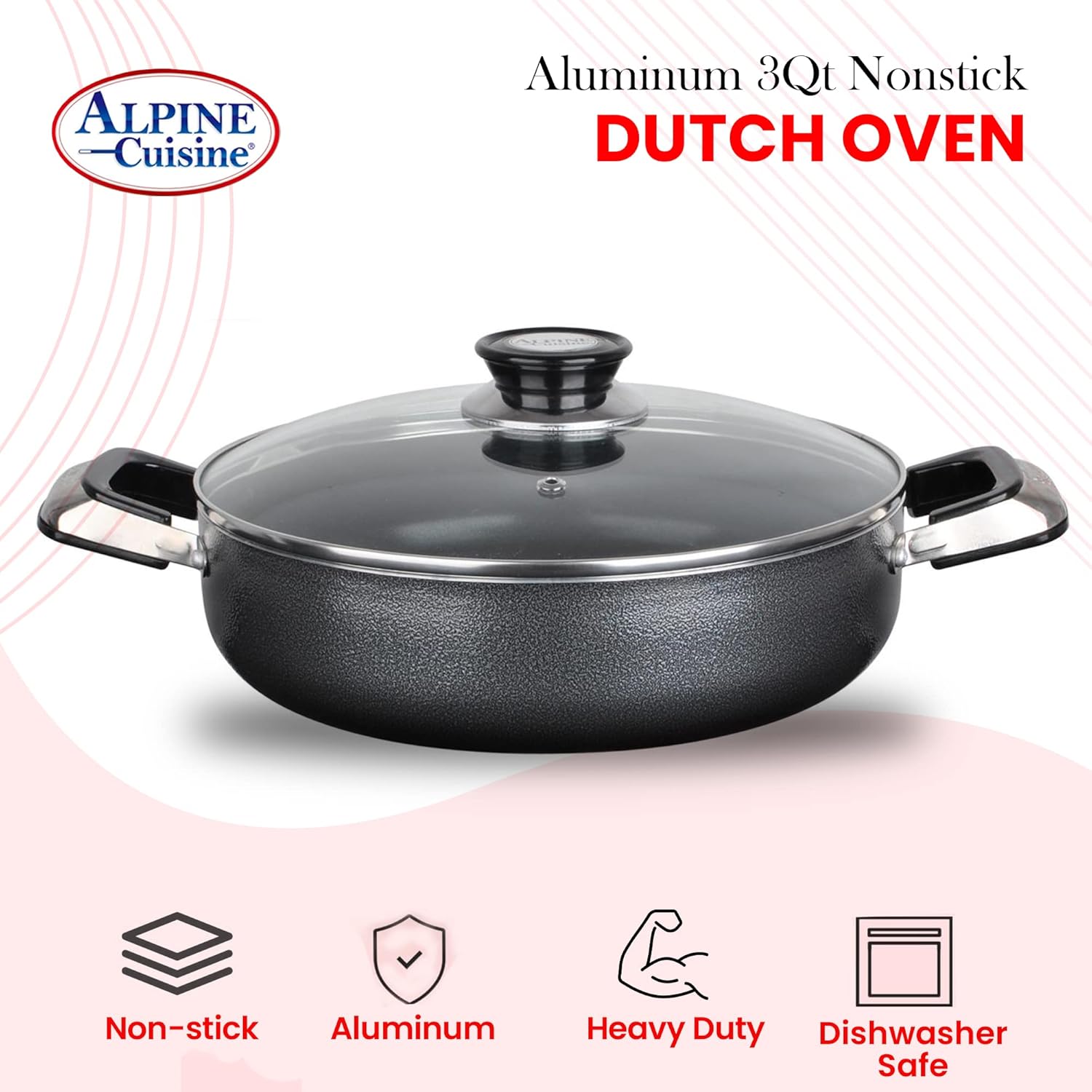 - 3-QUART DUTCH OVEN: Enjoy Roasted Chicken, Beef Stew, and More in this 3-Quart Dutch pot. Cook to Your Heart's Desire with the Aluminum Dutch Oven Nonstick pot by Aramco Alpine. This Industry-Leading Dutch oven pot with lid Roaster Is Constructed from High-Grade Aluminum to Ensure Superior Strength and Durability.