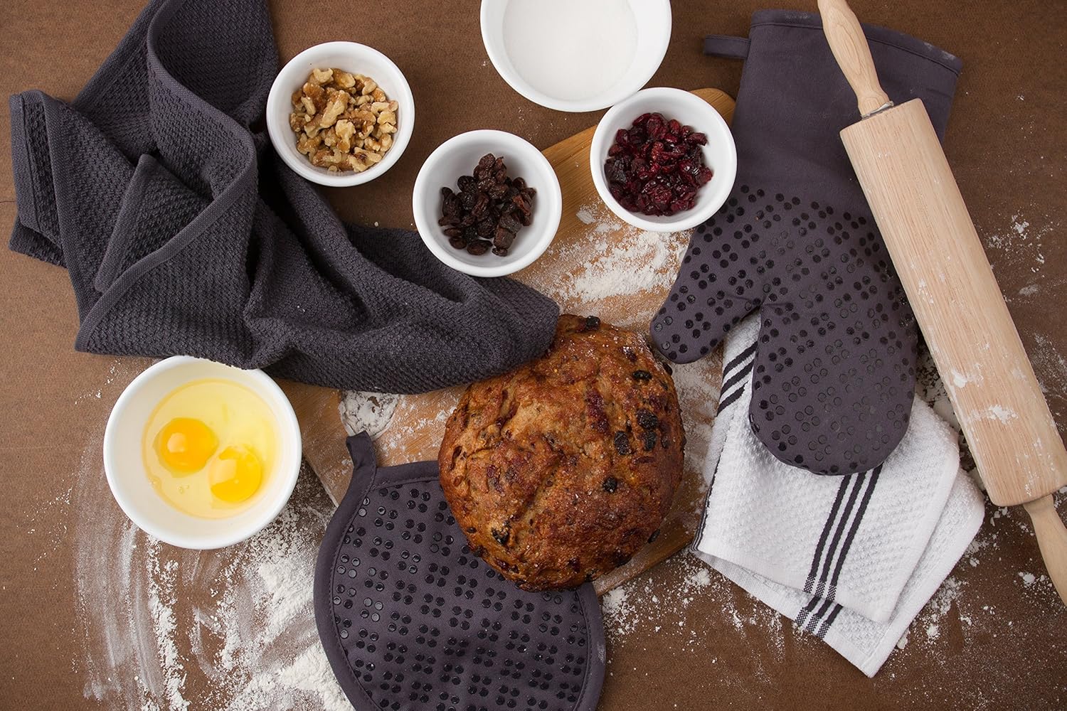 Sticky Toffee 9-Piece Kitchen Set – Gray 100% Cotton Terry Dish Towels, Dishcloths, Oven Mitts, and Pot Holders with Non-Slip Silicone Grip, Oeko-Tex Cotton