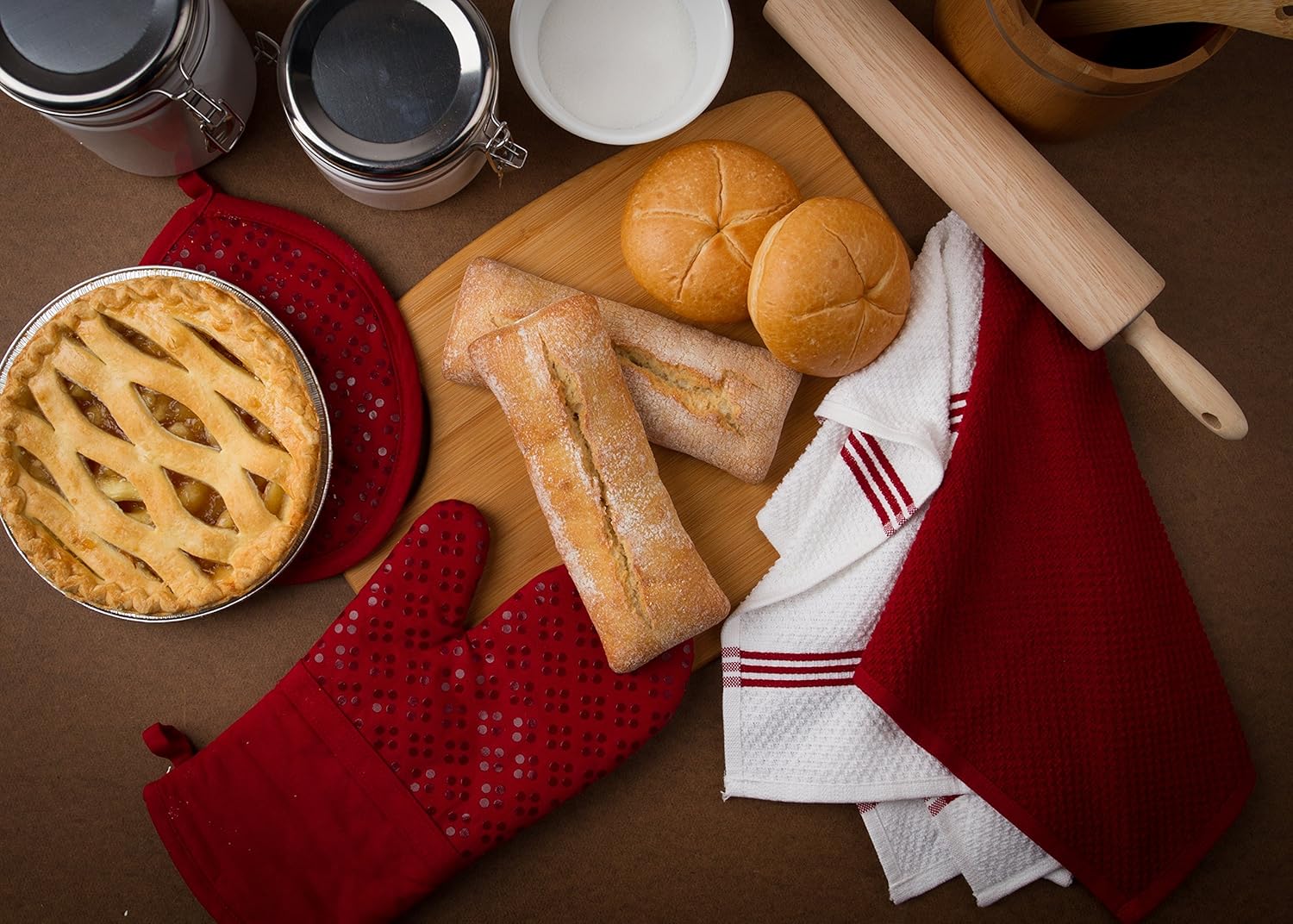 Sticky Toffee 9-Piece Kitchen Set – Red 100% Cotton Terry Dish Towels, Dishcloths, Oven Mitts, and Pot Holders with Non-Slip Silicone, Oeko-Tex Cotton
