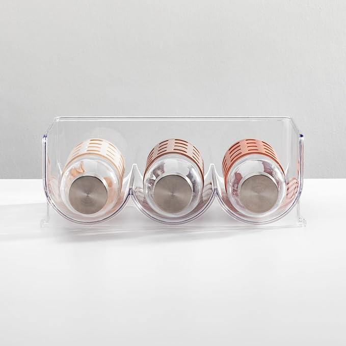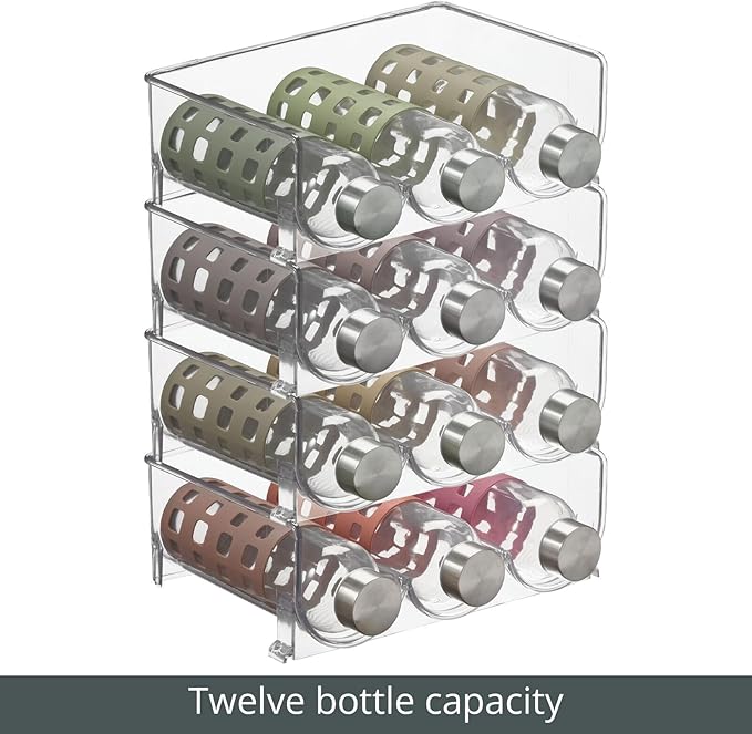 mDesign Plastic Free-Standing Stackable 3 Bottle Storage Holder Rack - Water, Wine, and Drink Organizer Shelf for Kitchen Countertop, Cabinet, Pantry, Fridge, Freezer, 4 Pack - Clear
