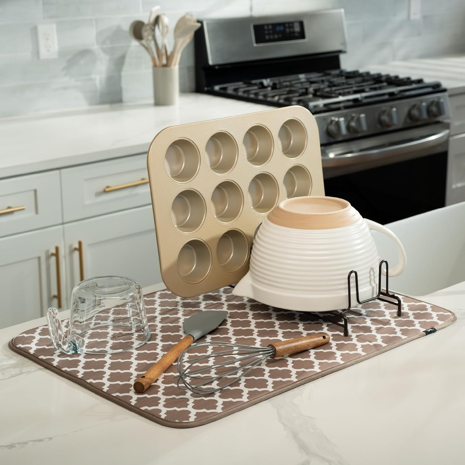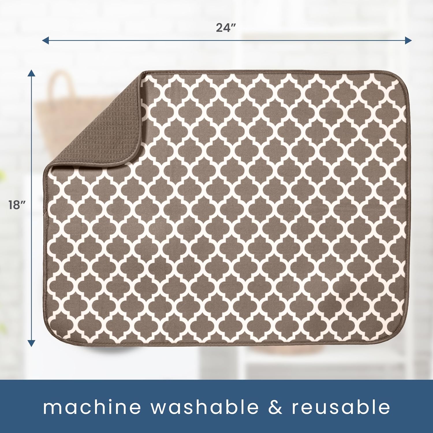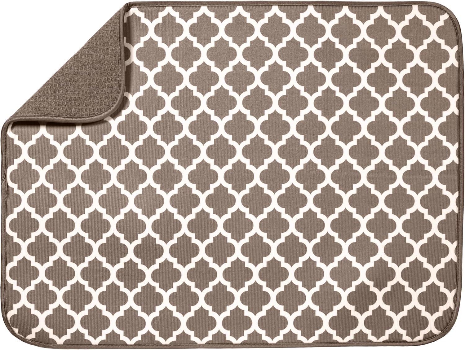 S&T INC. Dish Drying Mat XL, 18” x 24”, Absorbent Microfiber Kitchen Counter Mat, Dish Drying Pad for Dishes, Utensils, Pots and Pans, Extra Large, Taupe Trellis