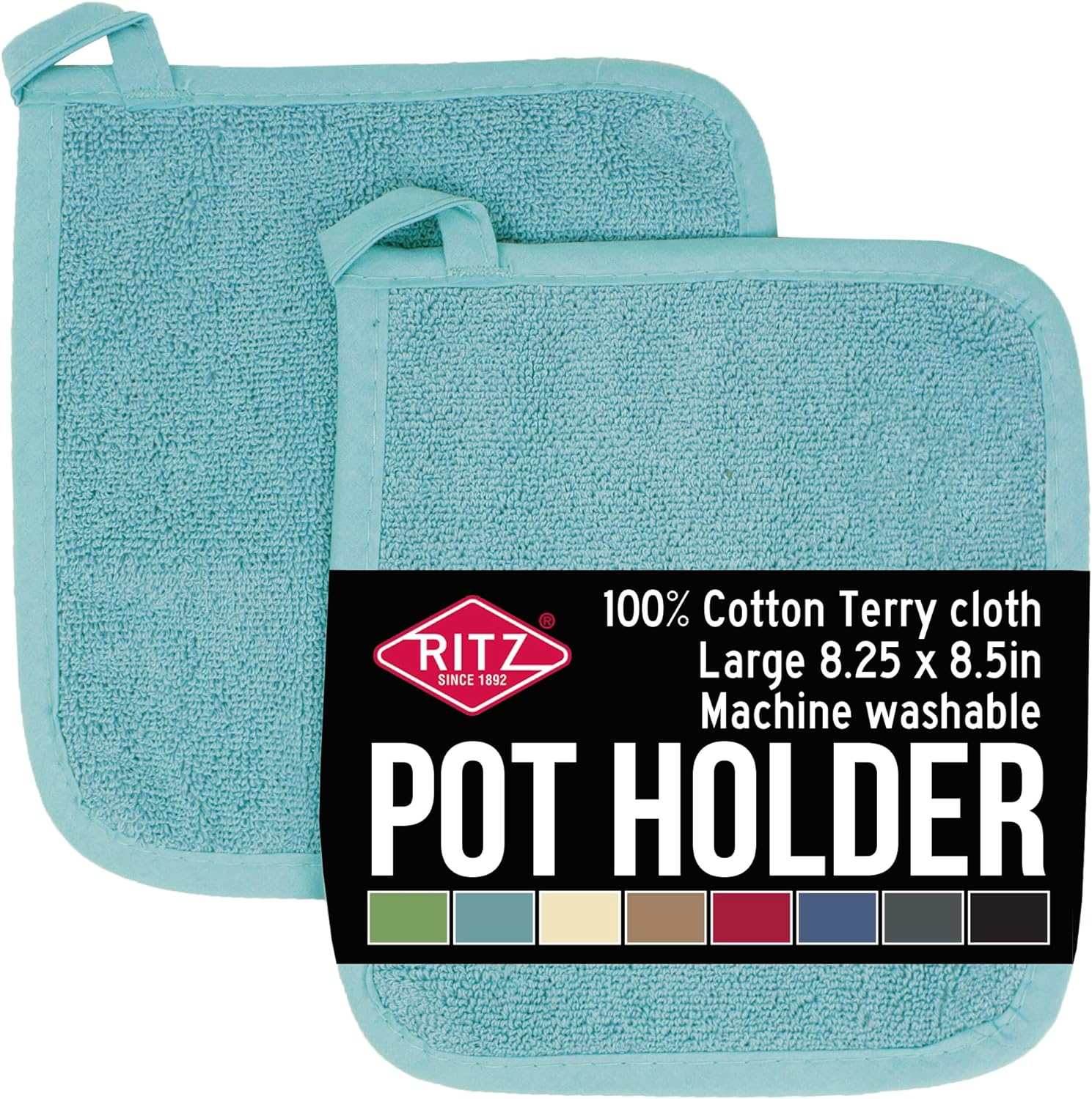 RITZ Terry Potholder & Hot Pad: Unparalleled Heat Resistant, Durable 100% Cotton – Ergonomically Designed for Optimal Grip – Easy-Care Machine Washable – 2-Pack, Dew