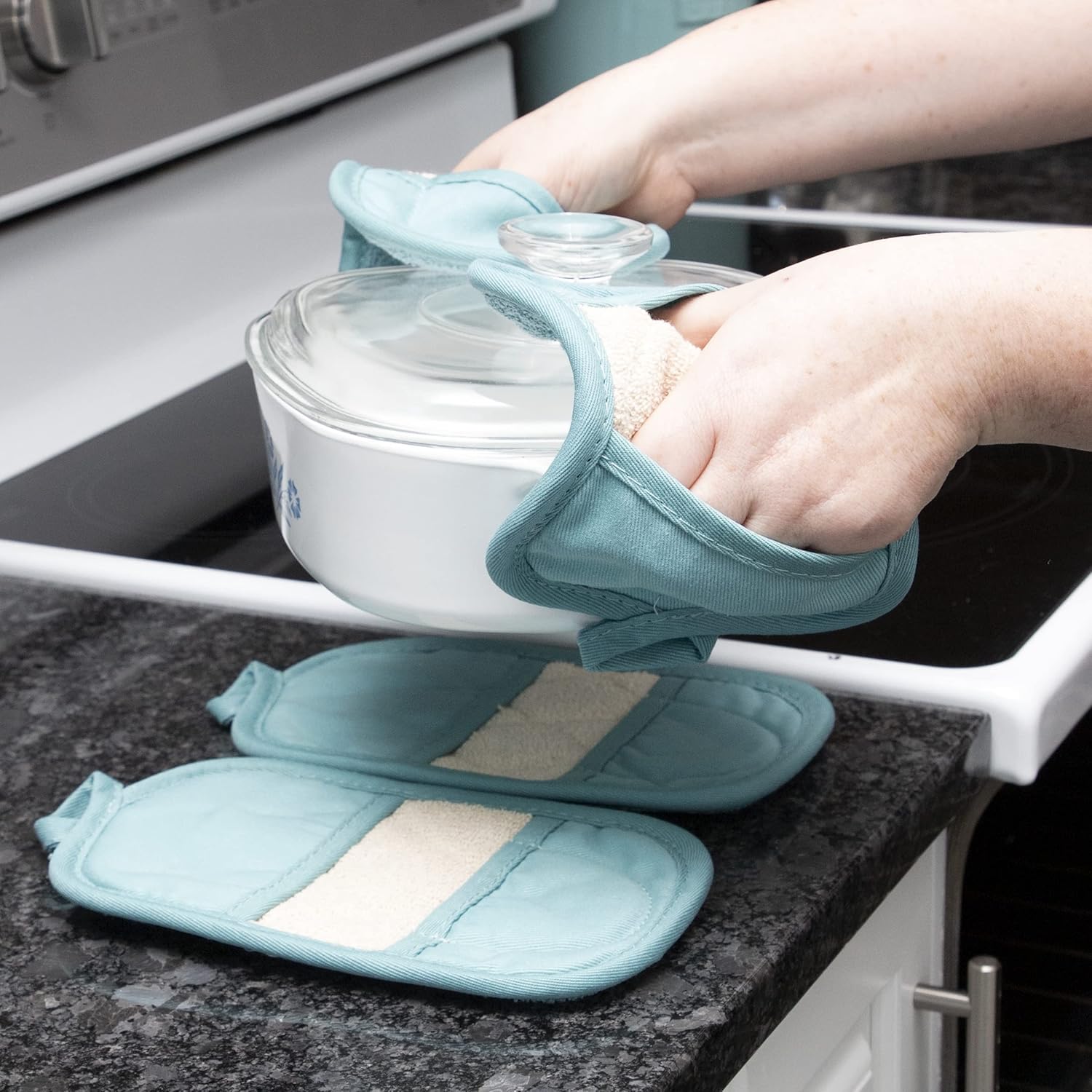 - Ritz Royale Collection 100% Cotton Terry Cloth Mitz, Dual-Function Pot Holder/Oven Mitt Set, 4-Pack, Dew