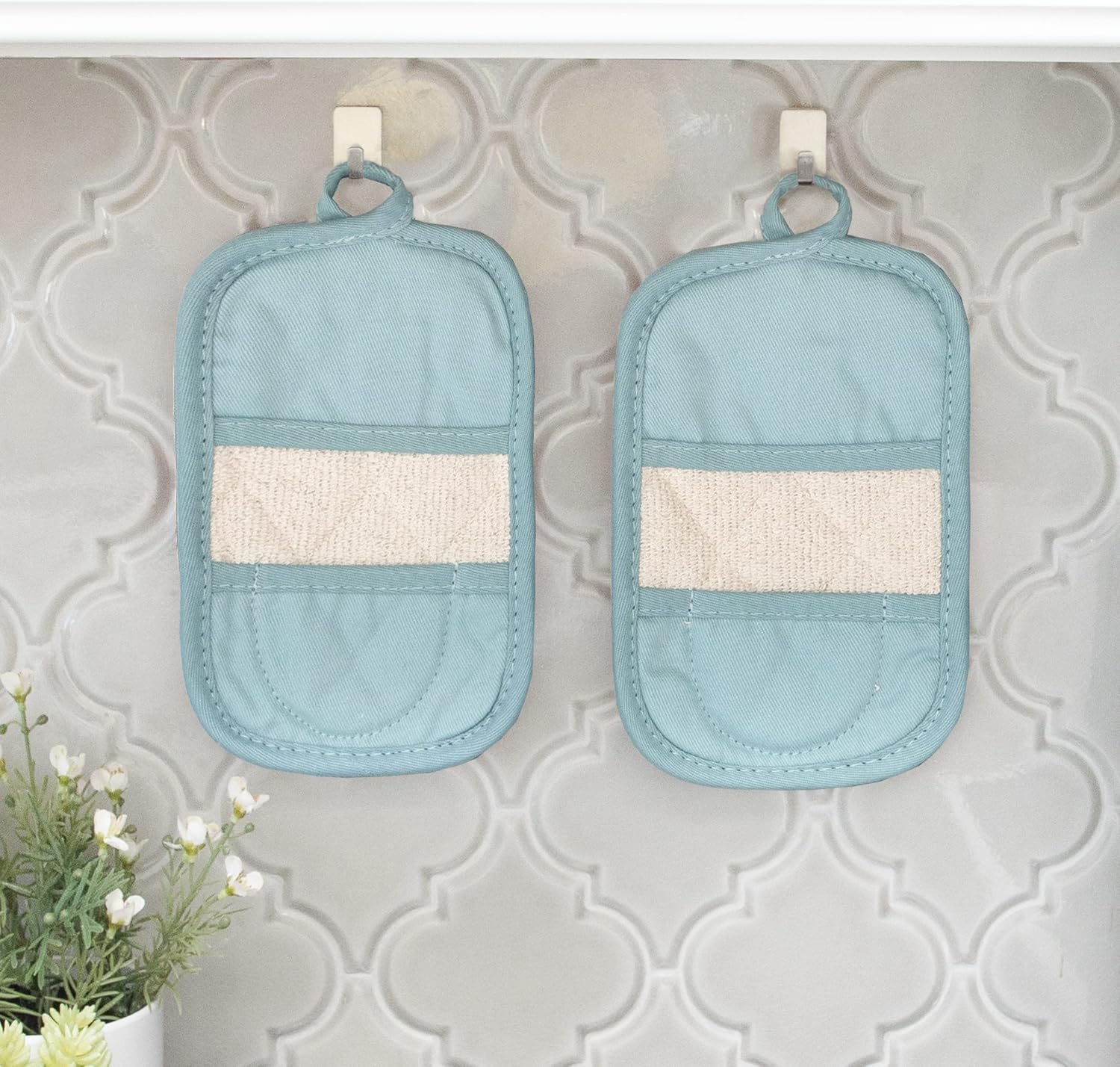 Ritz Premium Pot Holders & Heating Pads (4-Pack), 8.5" x 5.5", Heat Resistant, 100% Cotton Terry-Looped Pocket, for Kitchen and Barbeque, Dew