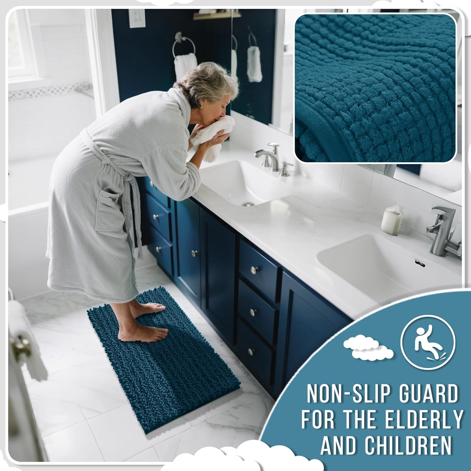 Yimobra Bathroom Rugs Non Slip Washable 32x20 Inch - Ultra Soft Absorbent Chenille Bath Mat, Quick Dry Shaggy Floor Carpet for Tub Shower, Peacock Blue Home Decor Accessories