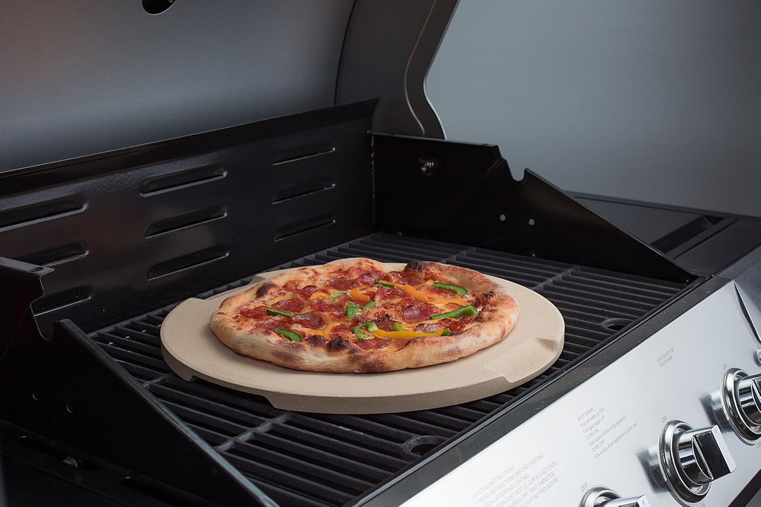 Pizza Stone, 15" Round Pizza Stone for Oven Grill BBQ, Cordierite Baking Stone for Pizza Bread Pie, Unique Built-in 4 Handles Cooking Stone