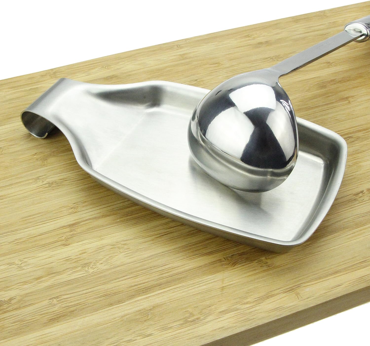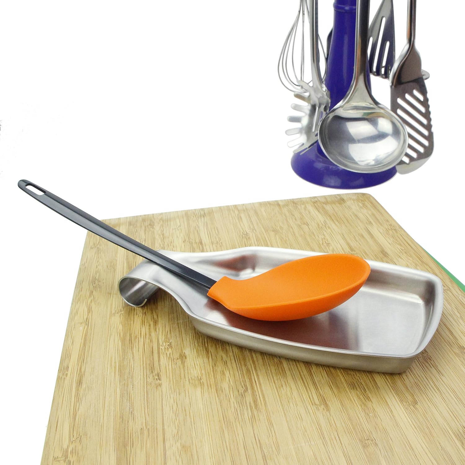 - Multi-Purpose Usage - Handy resting spot for cooking spoons or spatulas. Can be used on countertop or stovetop. The stainless steel spoon rest is perfect for kitchen, stove top, counter, coffee station, bar, camping and the buffet table etc