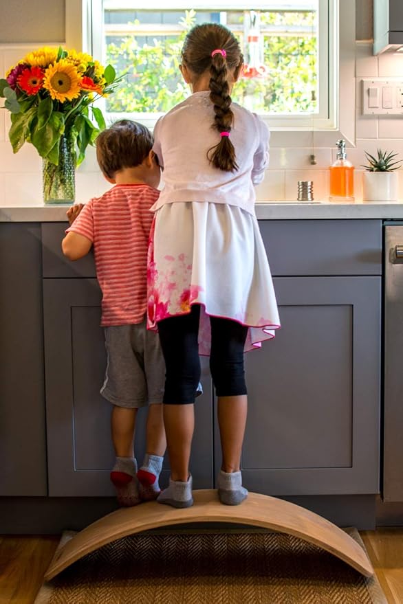Kinderfeets, Kinderboard, Waldorf Original Wooden Balance Board for Toddlers, Kids, Teens, Adults -Wobble Balance Board - Kids Wooden Toys Learning Toys - Rocker Board Yoga and Exercise