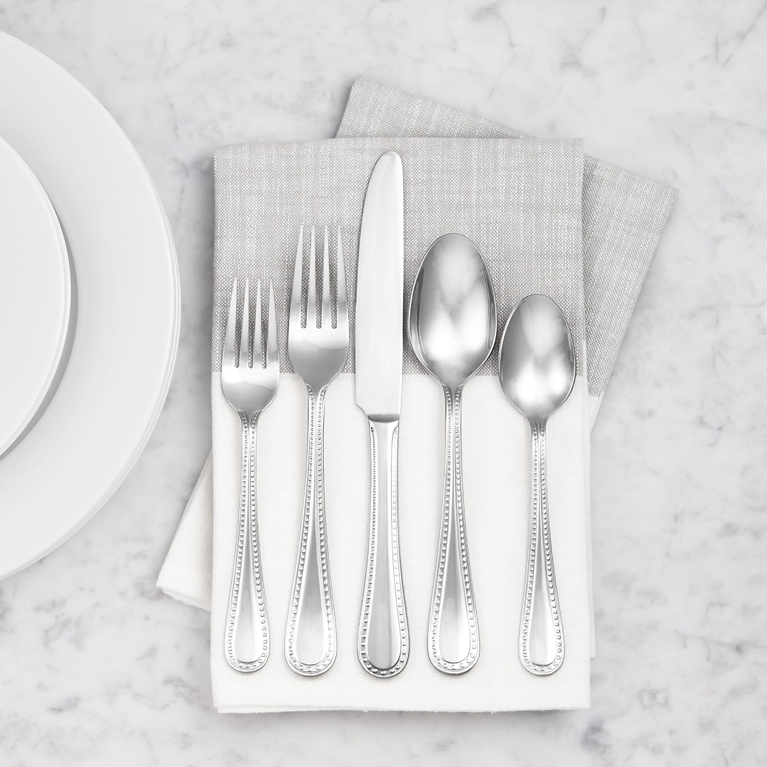 - Elegant pearled design on the handle is great for formal dining or everyday use; add matching sets for full service for 12 (knives and forks sold separately)