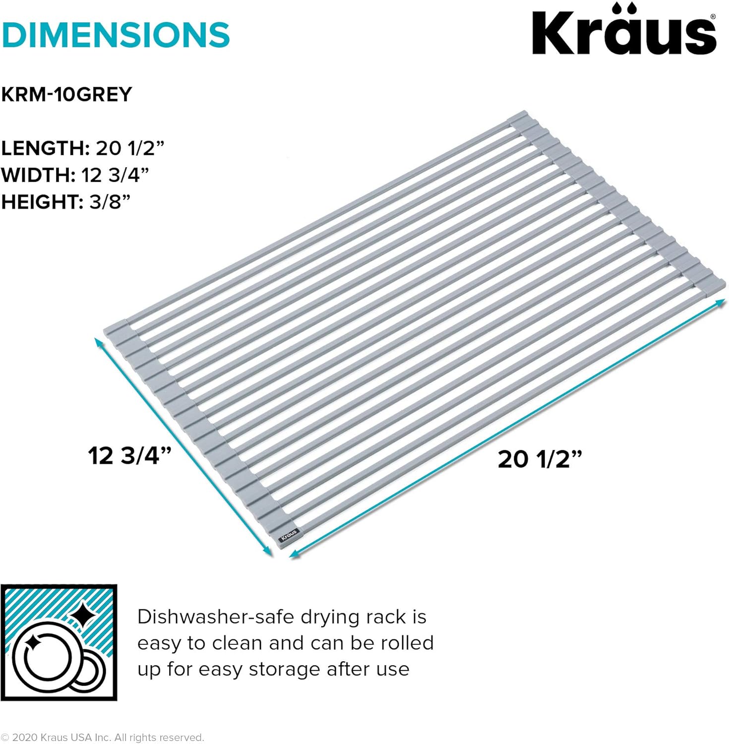 Kraus Multipurpose Over-Sink Roll-Up Dish Drying Rack, Colander and Trivet in Light Grey, KRM-10GREY