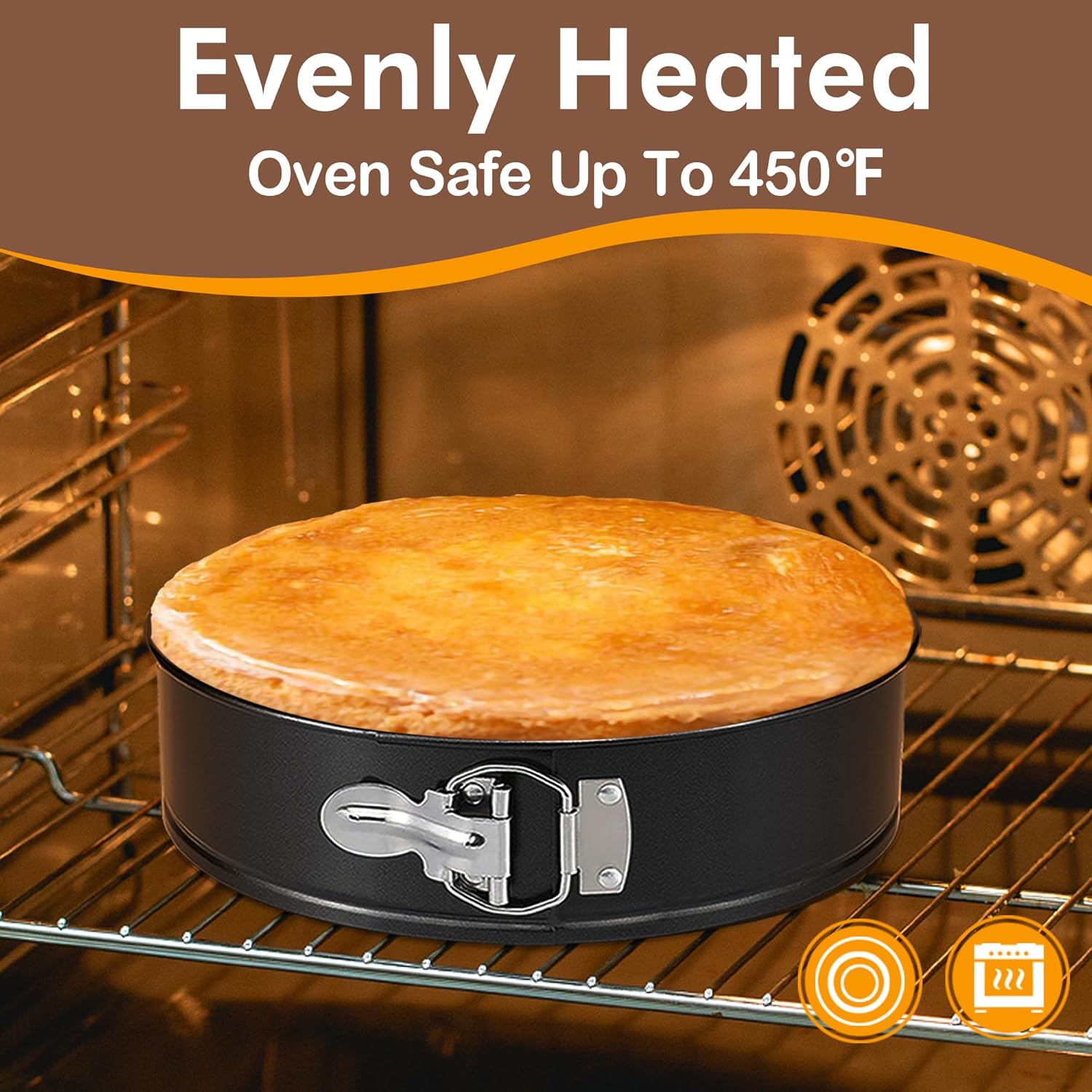 - QUALITY CHEESECAKE PAN - The cheesecake pan is made of a strong, high quality, bent-proof carbon steel, BPA free, the honeycomb textured base ensures even heat flow, which means beginners can bake perfect cakes without ever worrying about over and underbaking. The spring form pan is not only oven safe, but also pressure cooker and instant pot compatible. Heatproof up To 450F.