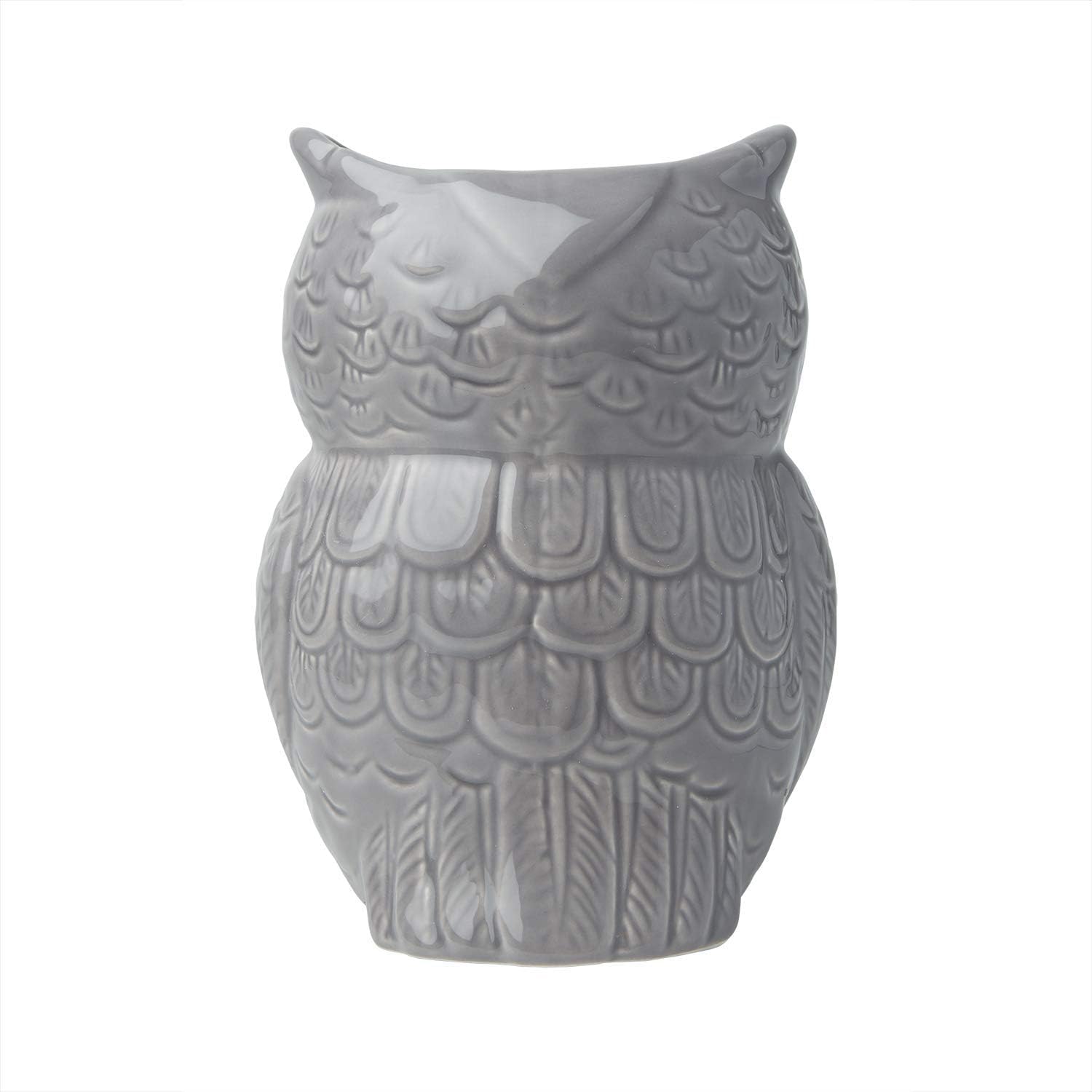Owl Utensil Holder Decorative Ceramic Cookware Crock & Organizer, in Lovely Grey Color - Utensil Caddy and Perfect Kitchen Ceramic Decor Gift - 5" L x 7" H x 4" W