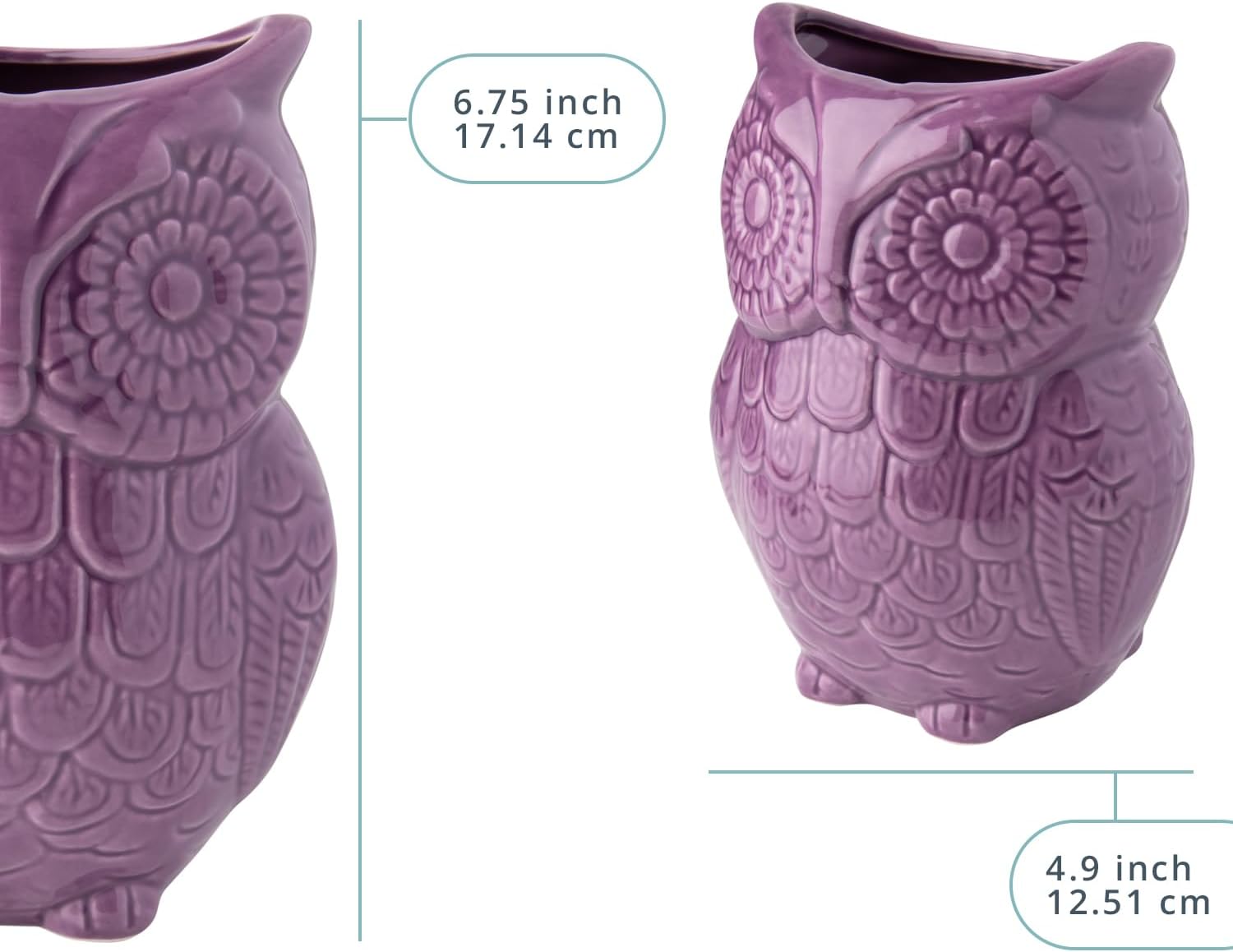 Comfify Owl Utensil Holder Decorative Ceramic Cookware Crock & Organizer, in Lovely Purple Color - Utensil Caddy and Perfect Kitchen Ceramic Decor Gift - 5” x 7” x 4” Compact & Cute