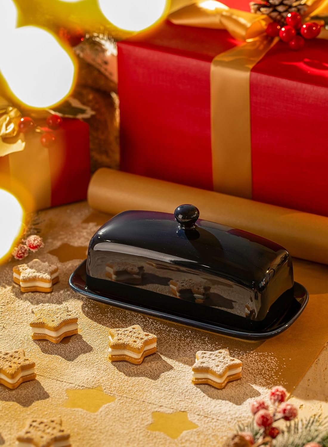 - Convenient and Practical Design - Ceramic butter dish features a finely crafted, rounded knob that's fast to grip and lift, even with wet hands. Delicate ridges on the dish keep the butter centered, preventing it from sliding to the edges—keeping it neat, clean. Available in ivory, mint green, navy blue, and matte black, the design blends classic and modern color palettes. It complements various kitchen styles from minimalist to Nordic or vintage, adding both charm and function to your table.