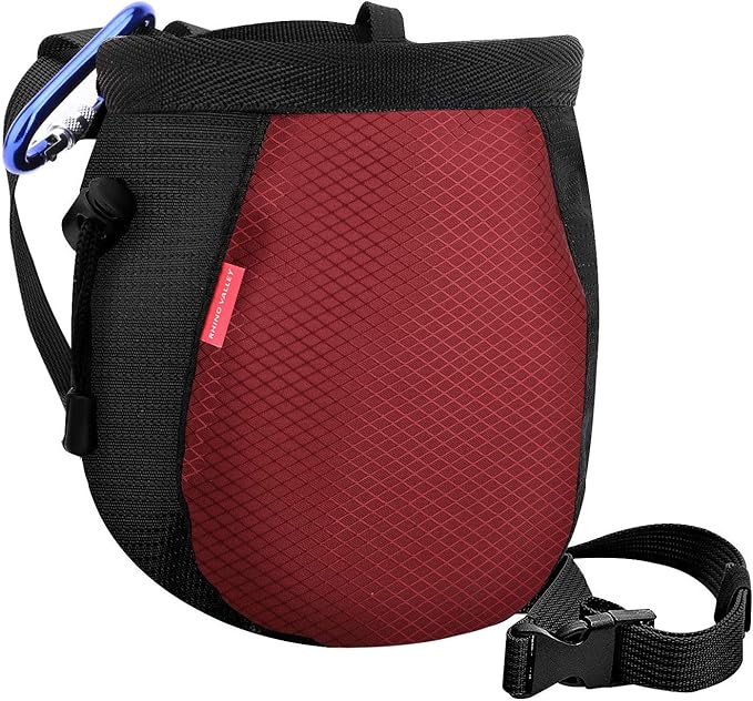 Rhino Valley Climbing Chalk Bag, No Leak Drawstring Chalk Bag with Adjustable Belt, Carabiner Clip and Zippered Pockets Chalk Bag for Climbing, Cross Fit, Weight Lifting & More