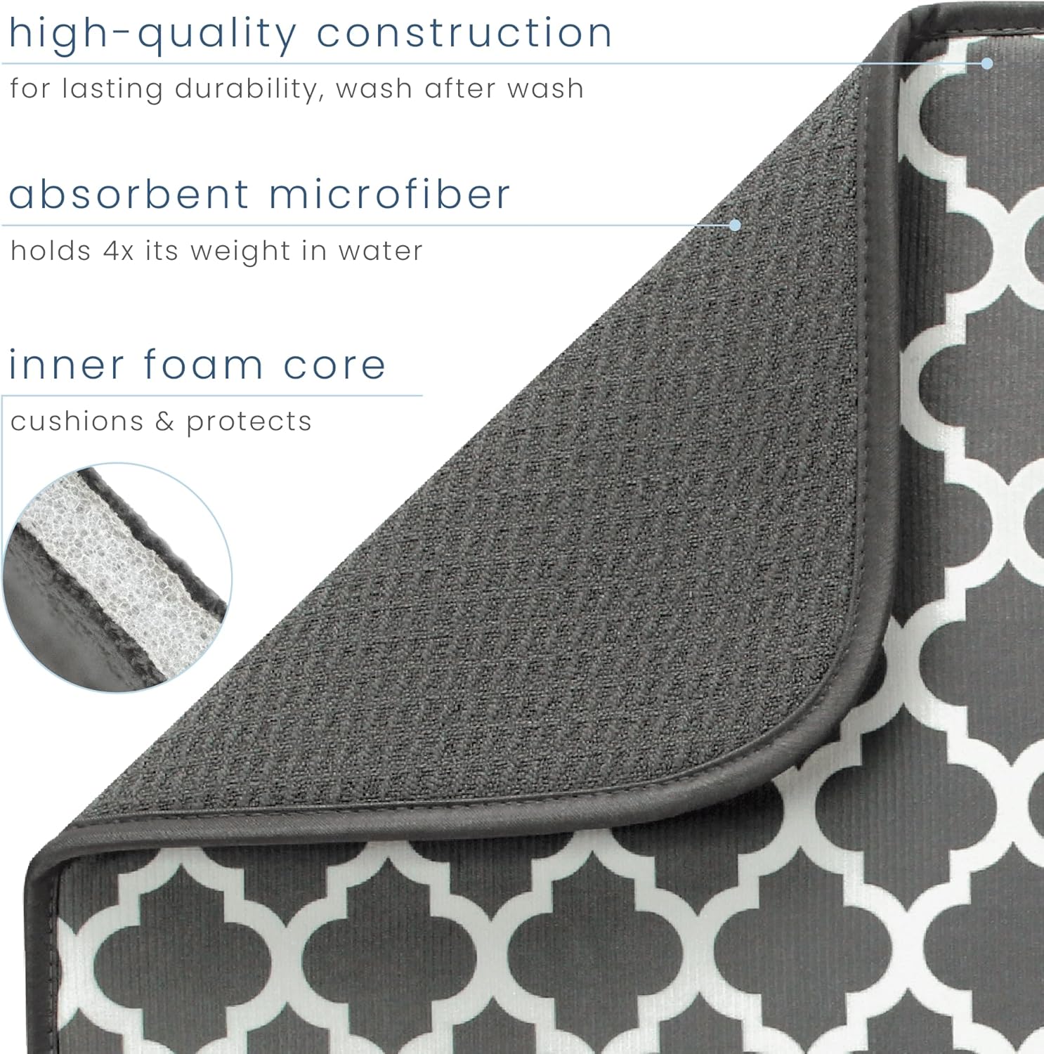 S&T INC. Dish Drying Mat XL, 18” x 24”, Absorbent Microfiber Kitchen Counter Mat, Dish Drying Pad for Dishes, Utensils, Pots and Pans, Extra Large, Pewter Grey Trellis