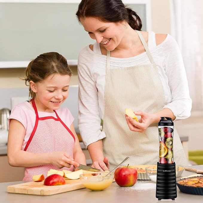 La Reveuse Smoothies Blender 300 Watt with 18 oz BPA-free Portable Travel Sports Bottle (Black)