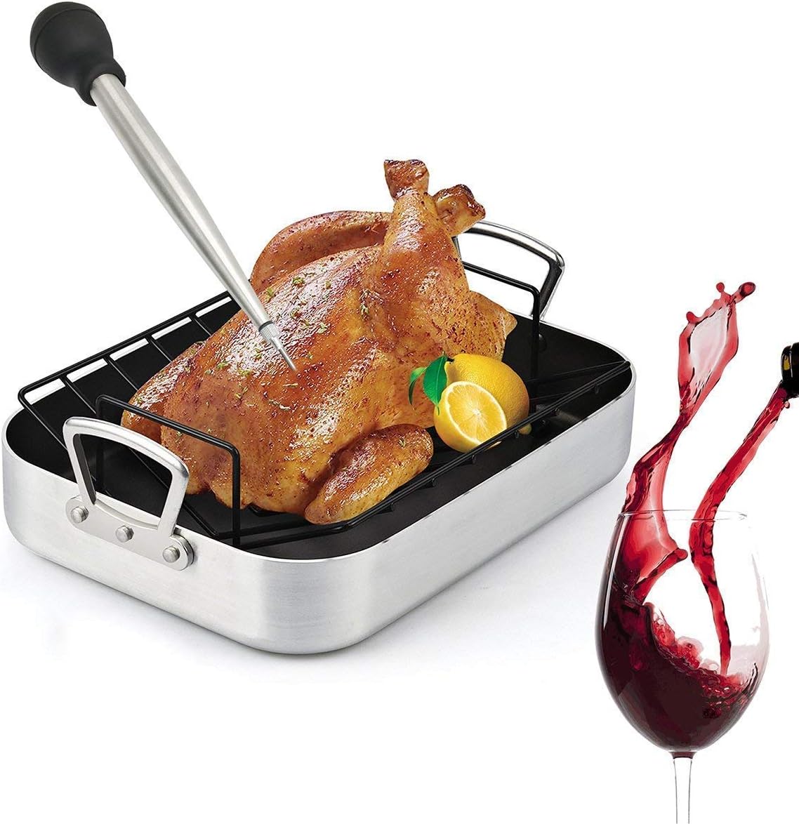 - function: Turkey Baster creates powerful suction.are able to effortlessly collect hot pan liquids. attach the needle included to inject and infuse flavorful juices into your roasts and cuts of meat.