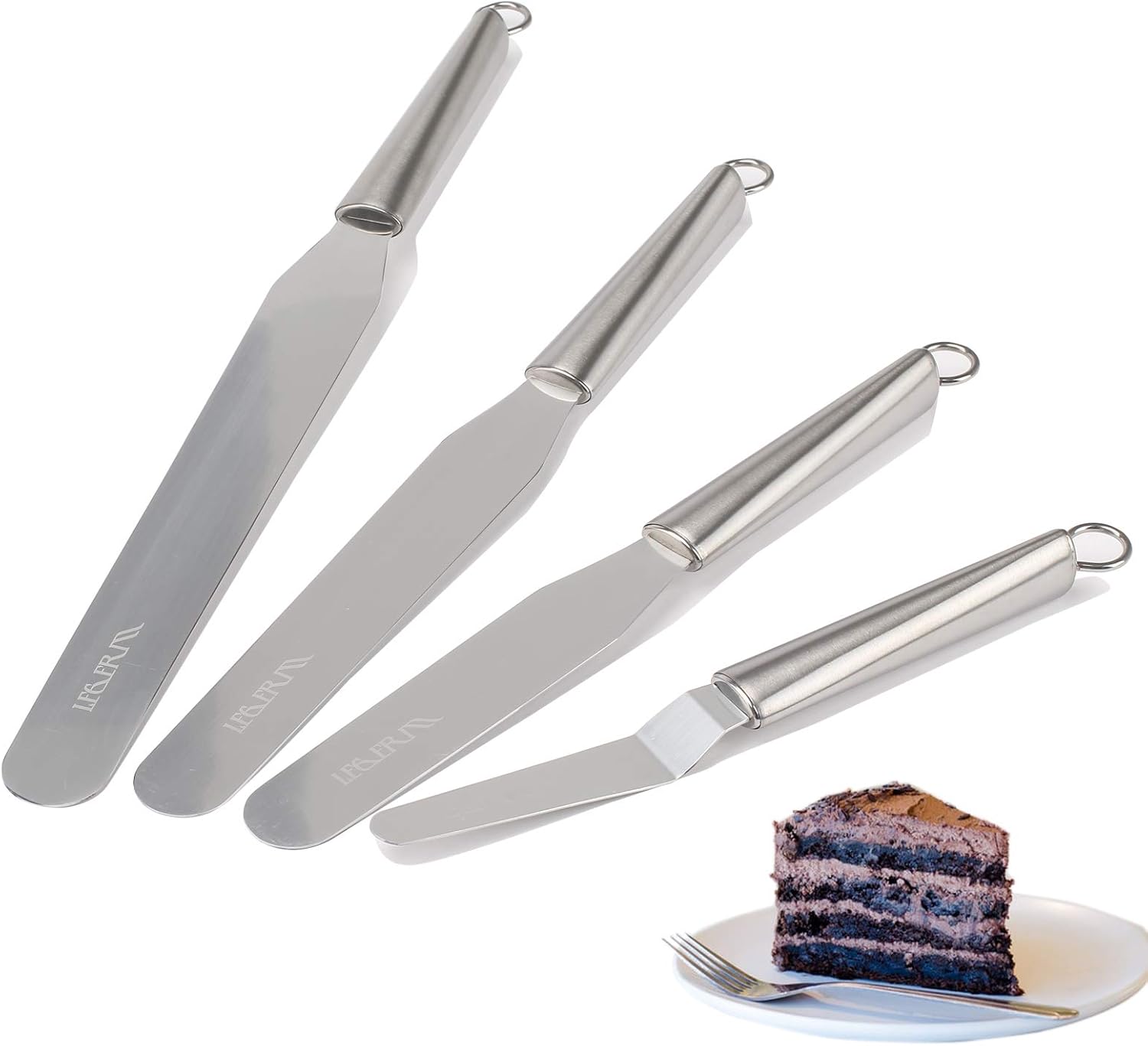 - Our cake spatula set includes three different sizes: 4" - 6" - 8" - 10" blade (total 7.5''-10.8''-12.8''-14.8''), This is your best choice to decorate a cake perfectly.