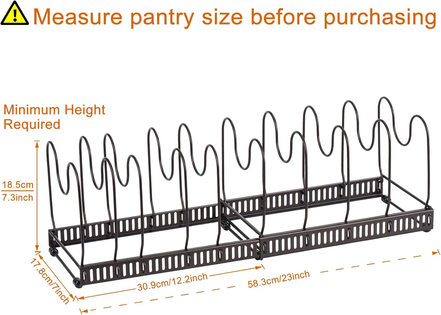 - [Multipurpose Uses] - The Toplife pot and lid organizer is ideal for storing pans, large platters, pot lids and cutting boards in the cabinet or pantry.
