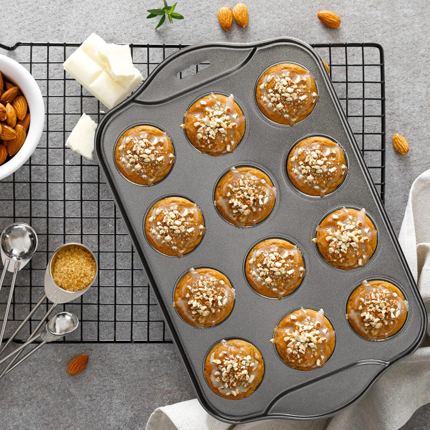 Tosnail 2 Pack 12 Cavity Mini Cheesecake Pan with Removable Bottom