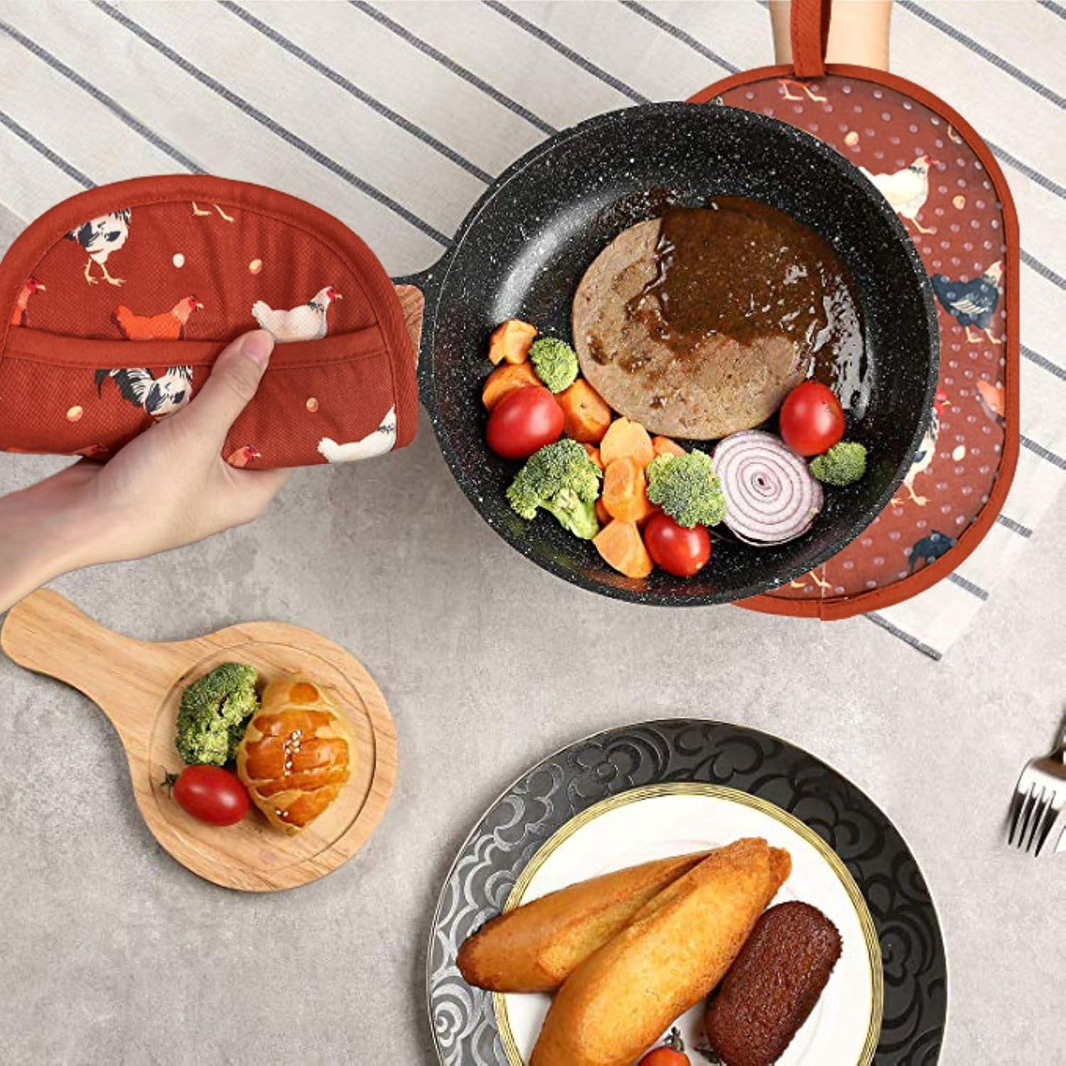 - 1. UNIQUE DESIGN: this pack of two oval shaped 7.5“x10” Pot Holders, different design for choice to match your kitchen.