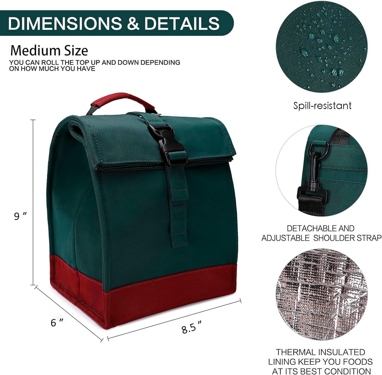 SUNNY BIRD Insulated Lunch Bag Rolltop Lunch Box Tote Lunchbox Bag for Women, Men, Adults and Teens (Green)