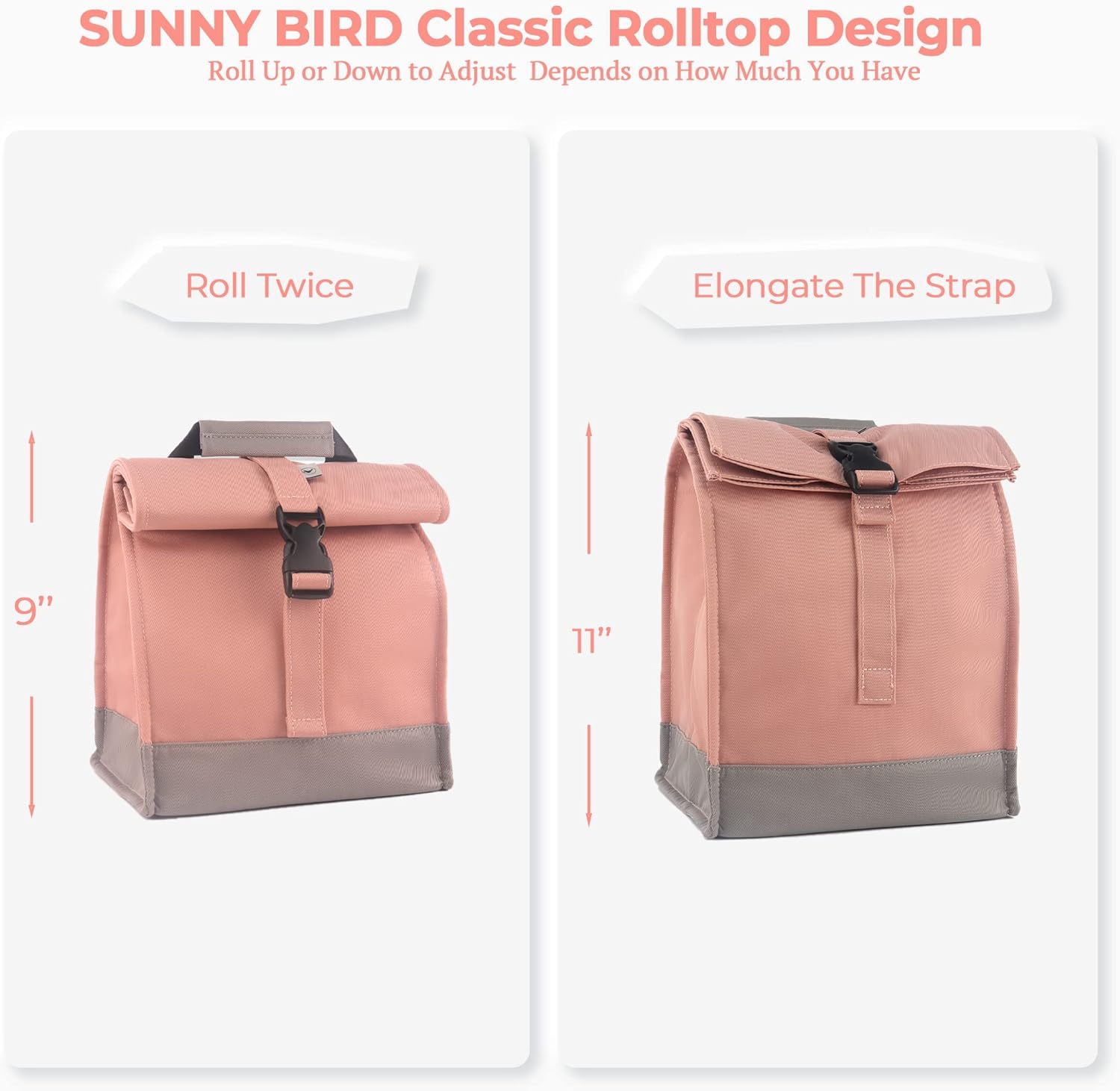 SUNNY BIRD Insulated Lunch Bag Pink Lunch Box Small Cooler Bag for Women, Girls, Adults and Teens (Pink)