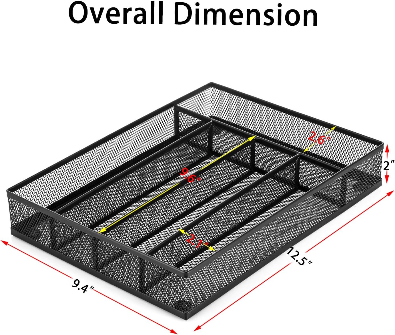 JANE EYRE Utensil Drawer Organizer, Cutlery Tray Silverware Flatware Storage Divider for Kitchen, Mesh Wire with Non-slip Foam Feet, 5 Component, Black