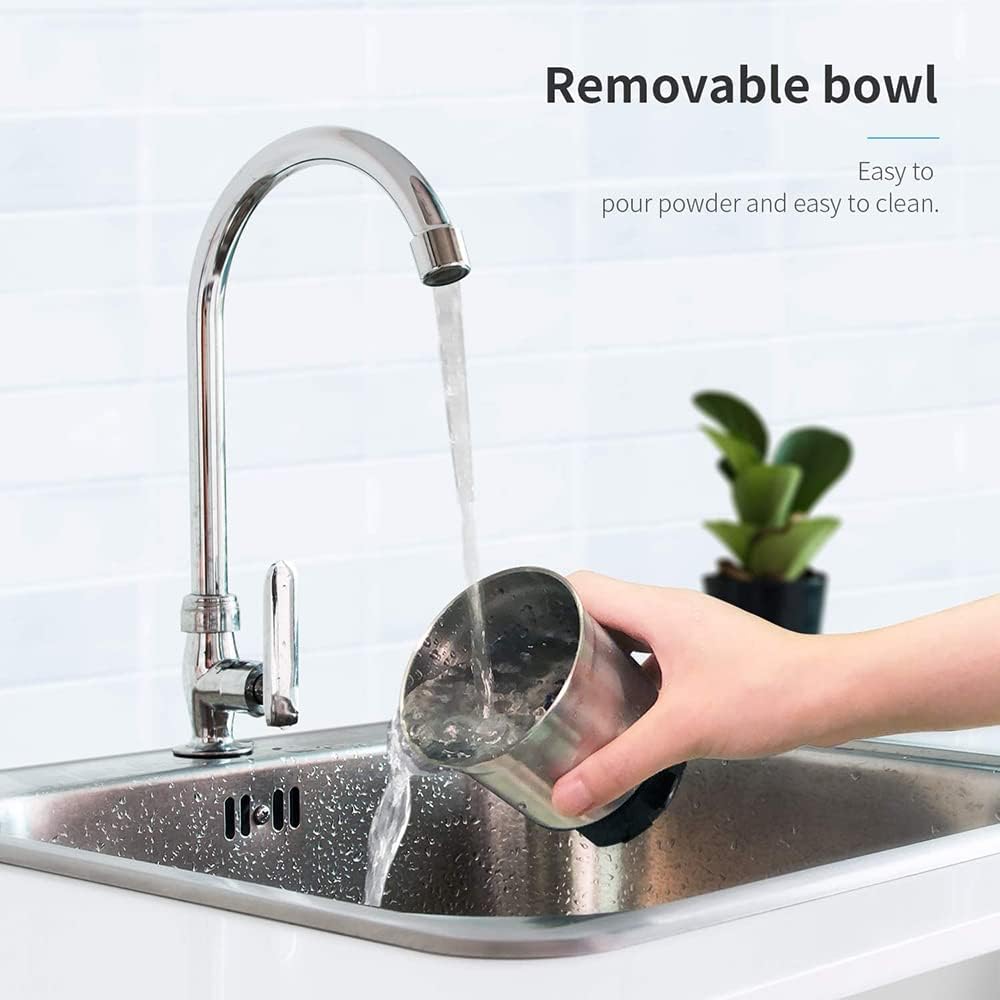 - Super Convenient Coffe Grinder Just by simply pressing the lid for different seconds to get coarse or fine coffee powder. Get desired powder in 15 seconds or less.The stainless steel cups can be removed from the base. The removable cups are dishwasher safe and easy to clean as well.