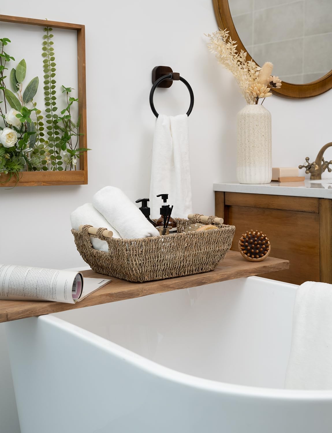 StorageWorks Hand-Woven Large Storage Baskets with Wooden Handles, Seagrass Wicker Baskets for Organizing, 2-Pack