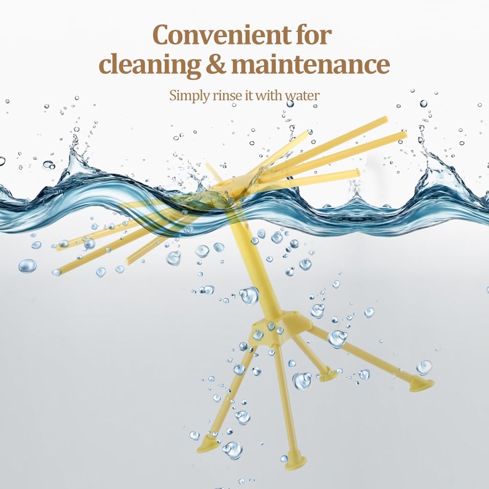 Ourokhome Collapsible Pasta Drying Rack, Plastic Foldable Homemade Fresh Spaghetti Stand Dryer Noodle Hanger for Kitchen with 10 Arms, Stable, Easy Storage, Quickly Set Up (Yellow)