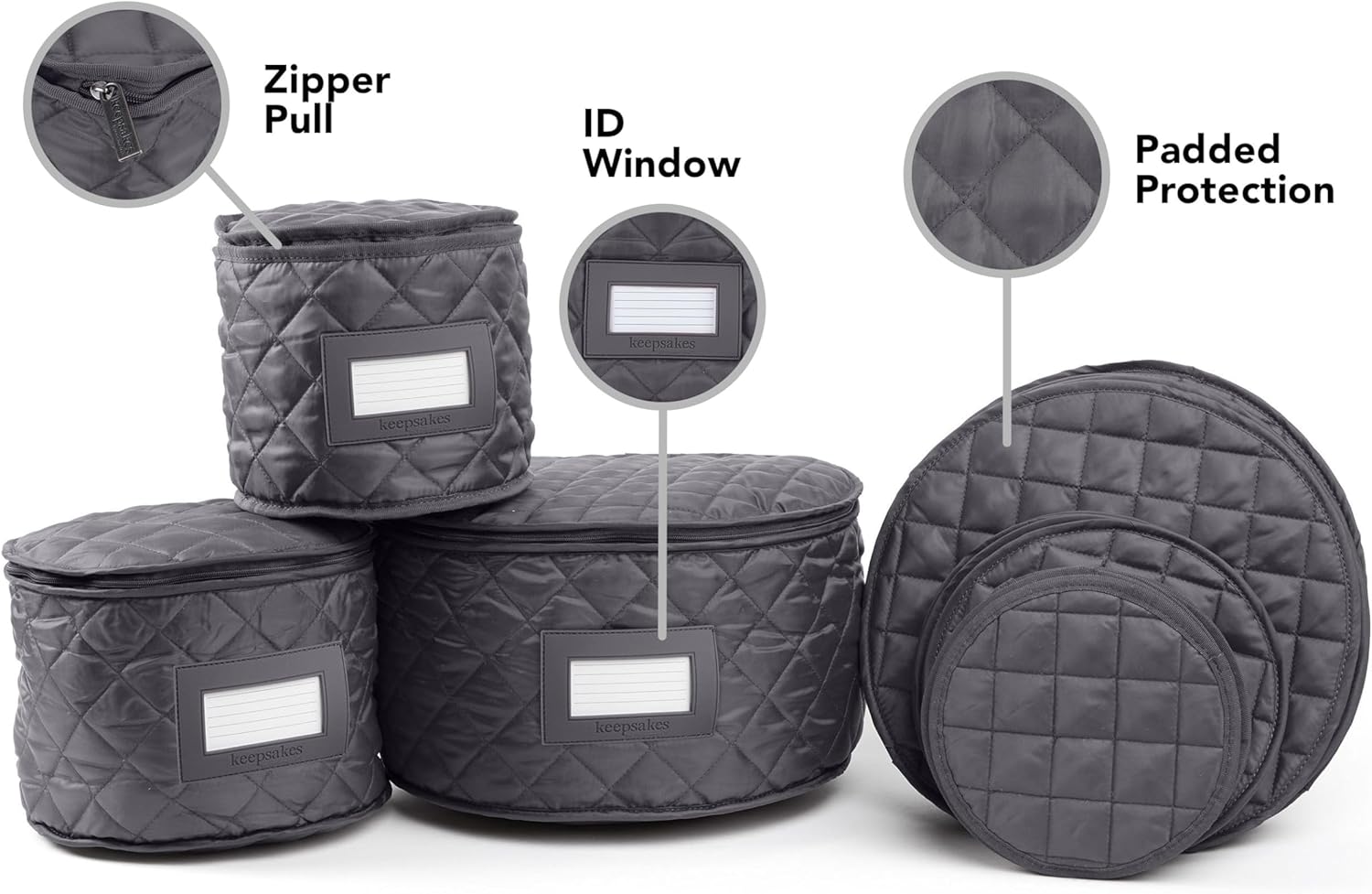 Covermates Keepsakes - Dish Storage Set - Padded Protection - ID Window - Stain Resistant - Machine Washable - China Storage, Slate