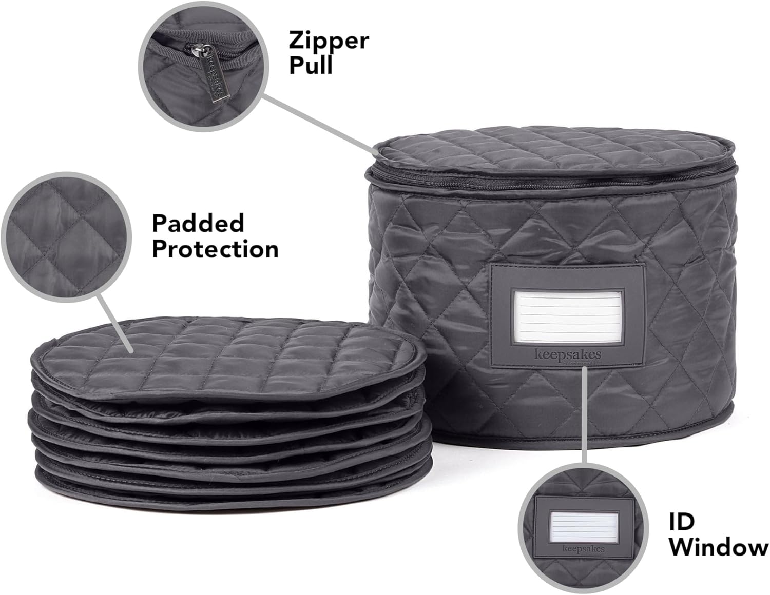 Covermates Keepsakes - Dish Storage - Padded Protection - ID Window - Stain Resistant - Machine Washable - China Storage, Slate