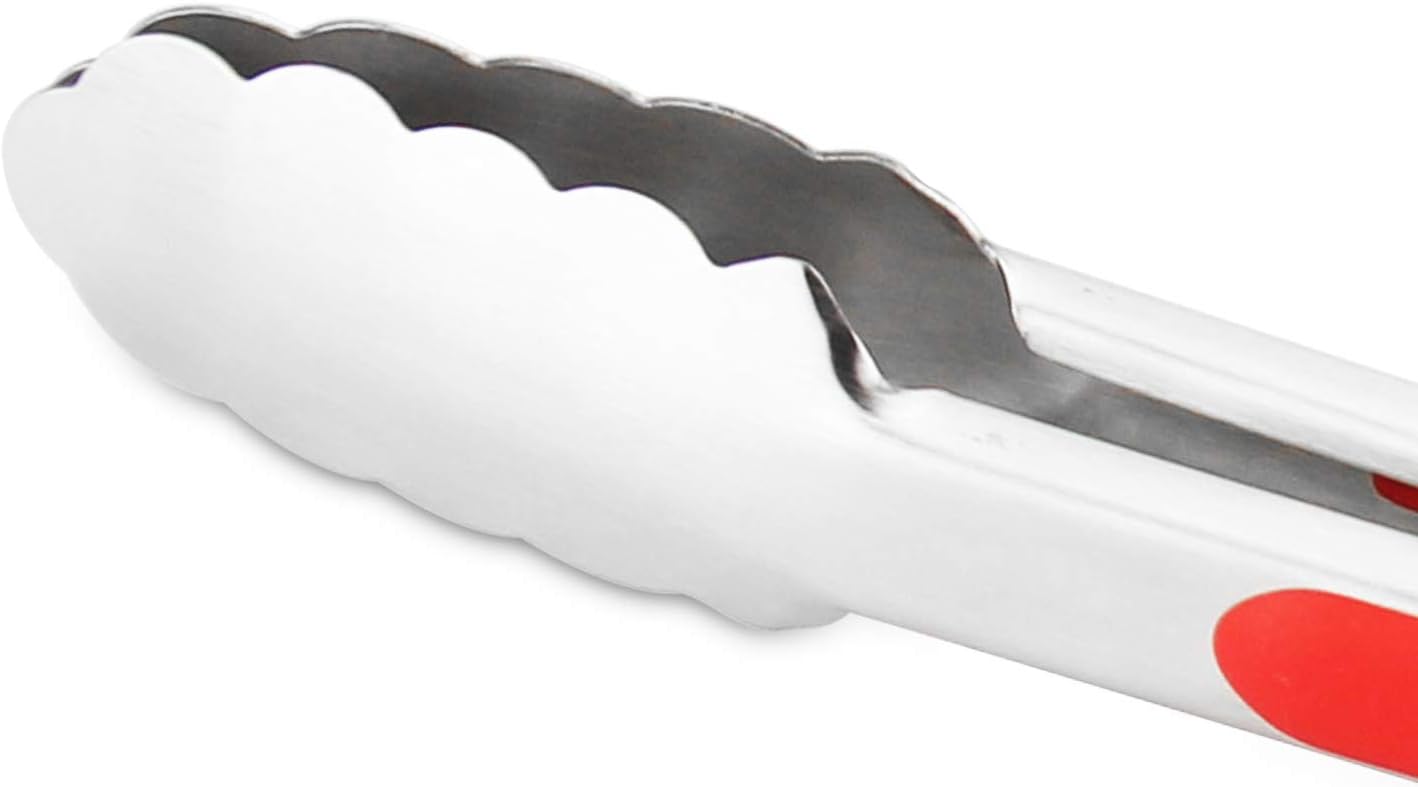 304 Stainless Steel Kitchen Cooking Tongs, 9" and 12" Set of 2 Sturdy Grilling Barbeque Brushed Locking Food Tongs with Ergonomic Grip, Red
