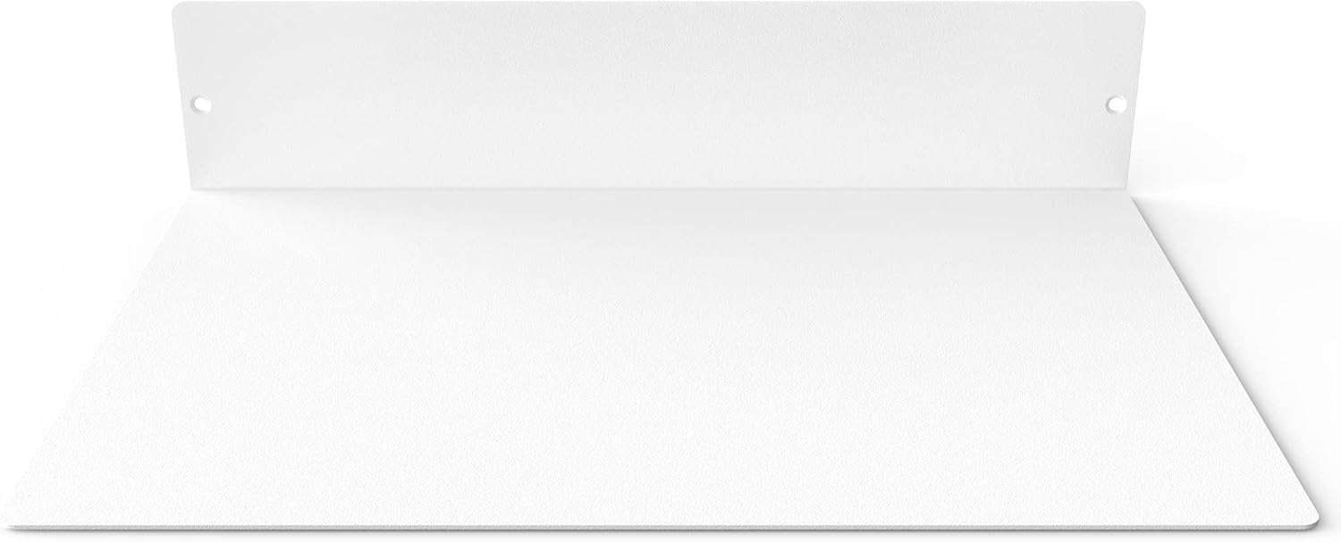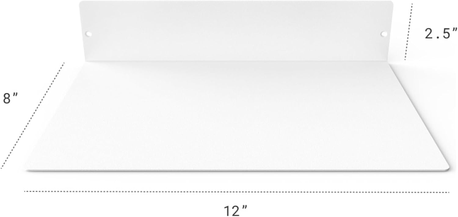 - DIMENSIONS & DETAILS: Measuring 12-inches long x 8-inches in depth, our steel floating shelf is made from 14 gauge raw steel and professionally powder coated white. The weight of the shelf is 2.5 LBS. It's perfect for displaying books, plants, bottles, picture ledges, and retail displays