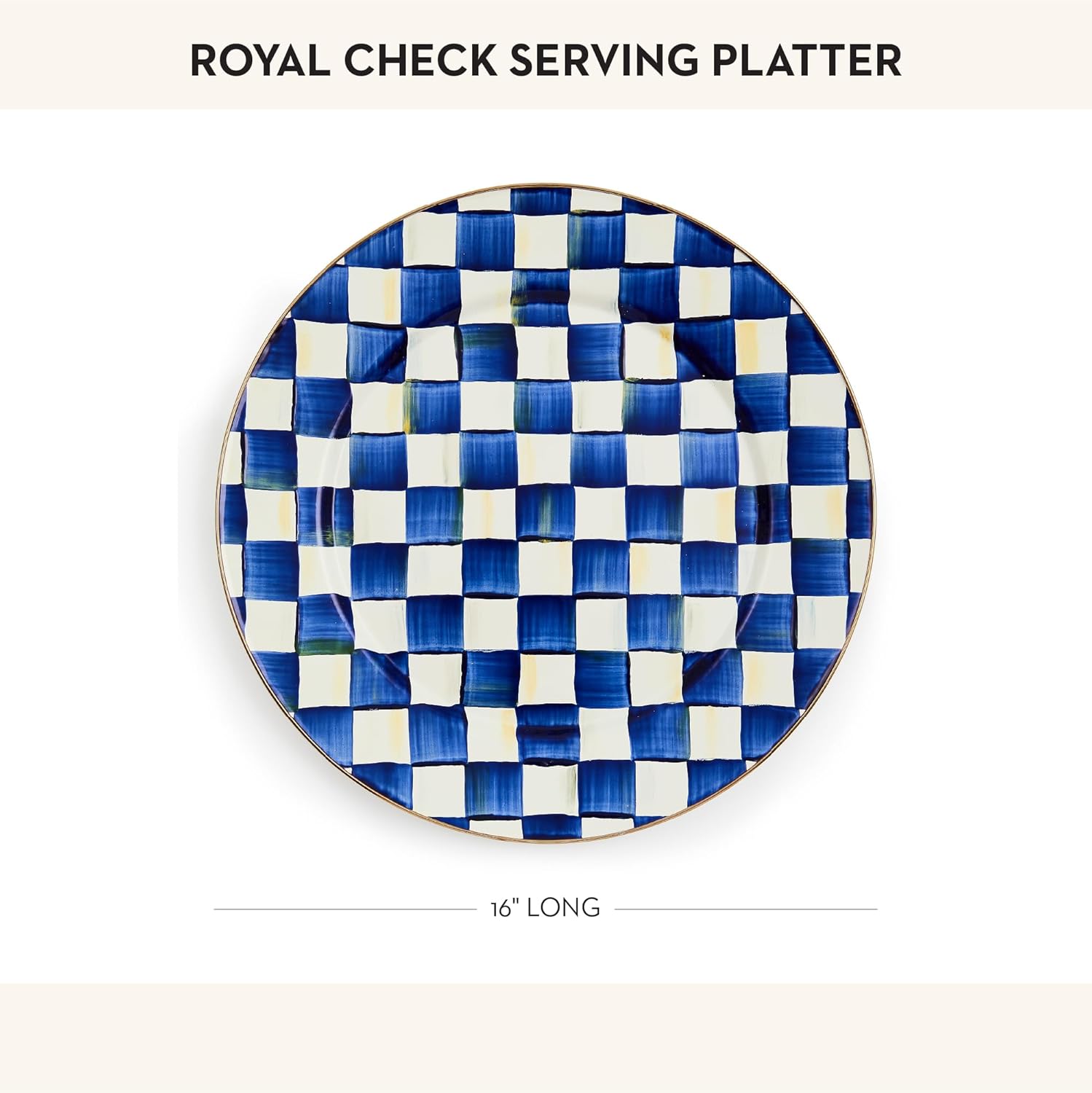- ELEGANT SERVING PLATE: Serve in style with the Royal Check Enamel Serving Platter. This regal decorative platter tray is great for holidays or everyday events and features our signature blue-and-white color-dragged checks.